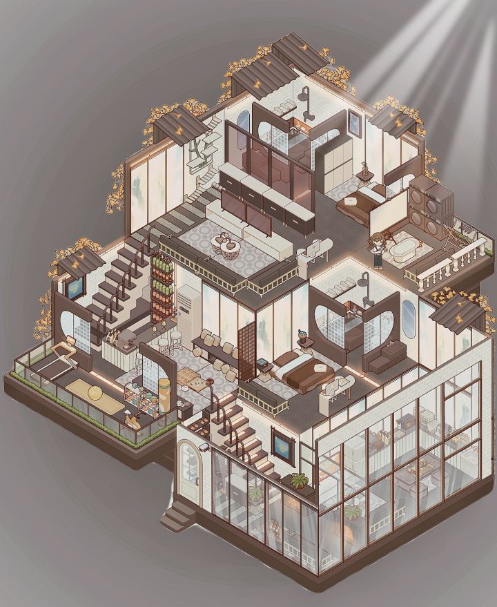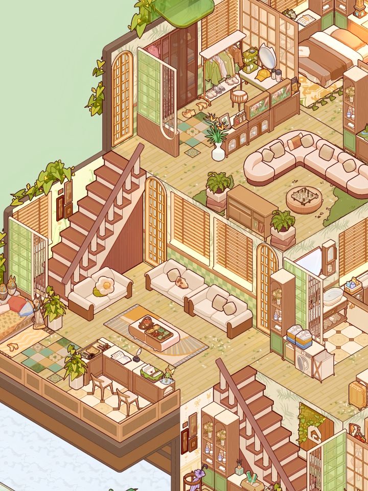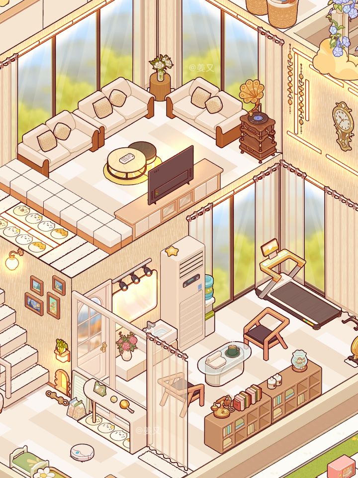 🌷「森系雅筑」终于从学校返回到家里啦❗❗赶紧把昨天装完的森系雅筑抠图修好发出来啦❗❗P3为无滤镜上午时间效果图P4为无滤镜下午时间效果图P5:入户P6:一楼客厅➕厨房P7:二楼客厅➕植物观察阳台区P8:超大书房P9:三楼私人客厅➕办公区#我的休闲时光 #我的休闲时光创作官 #我的休闲时光蜗居物语 #我的休闲时光装修分享 #我的休闲时光云栖雅筑 #装修游戏 #少女心游戏安