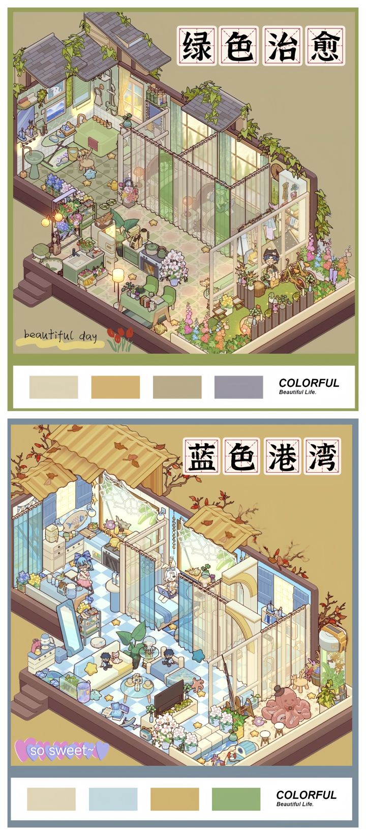 铛铛,我跟我小号的双人小屋总算装修好啦~