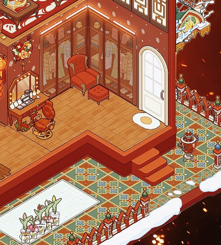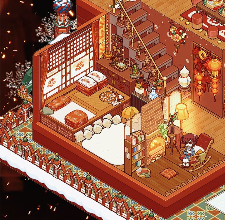 暖乎乎的东北大炕P2:卧室区➕休闲区P3:化妆区➕衣帽卫生区P4:入户➕餐厨区➕客厅区#我的休闲时光 #我的休闲时光年味装修 #我的休闲时光loft装修 #游戏日常 #我的休闲时光飞雪接力 #少女心游戏安利