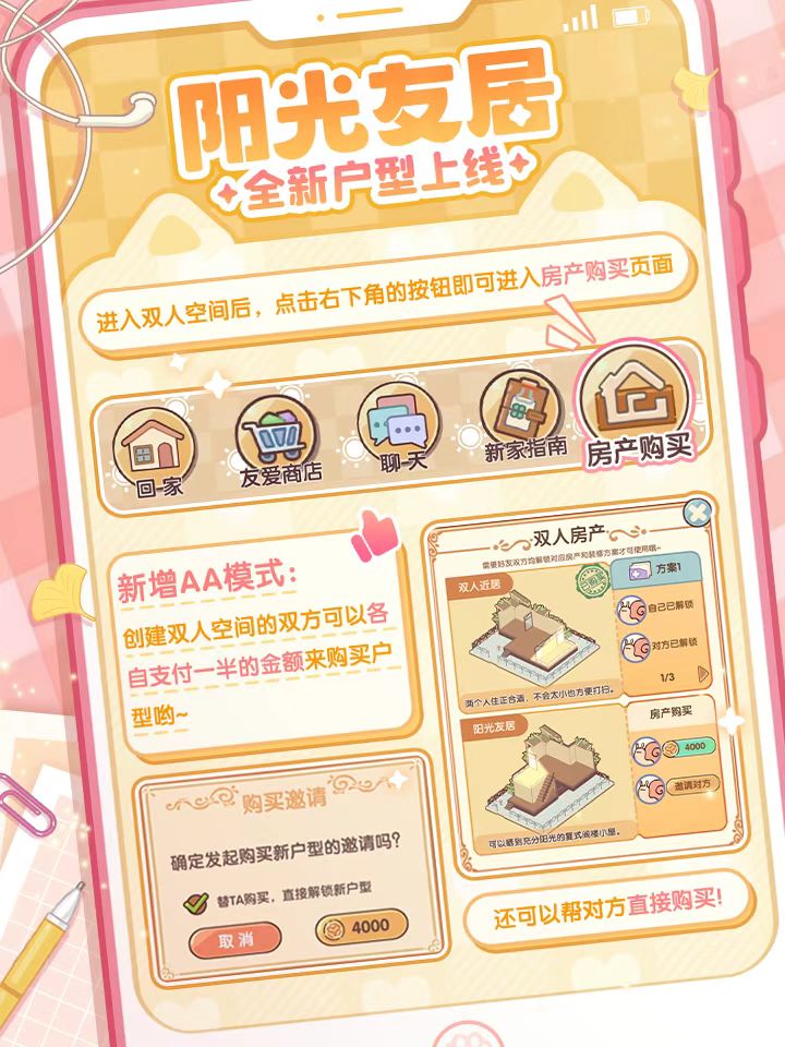 ⭐️双人空间上新户型了!你愿意跟我一起住吗?⭐️需要8000金币才能买新户型!你愿意与我一起“AA”买下吗?⭐️可以拥有多套装修方案了!你愿意和我一起装修不同风格的小屋吗?现在!马上!艾特出你的装修搭子看看TA会怎么回答吧~ #我的休闲时光 #我的休闲时光创作官 #我的休闲时光新户型 #我的休闲时光蜗居物语 #我的休闲时光双人空间