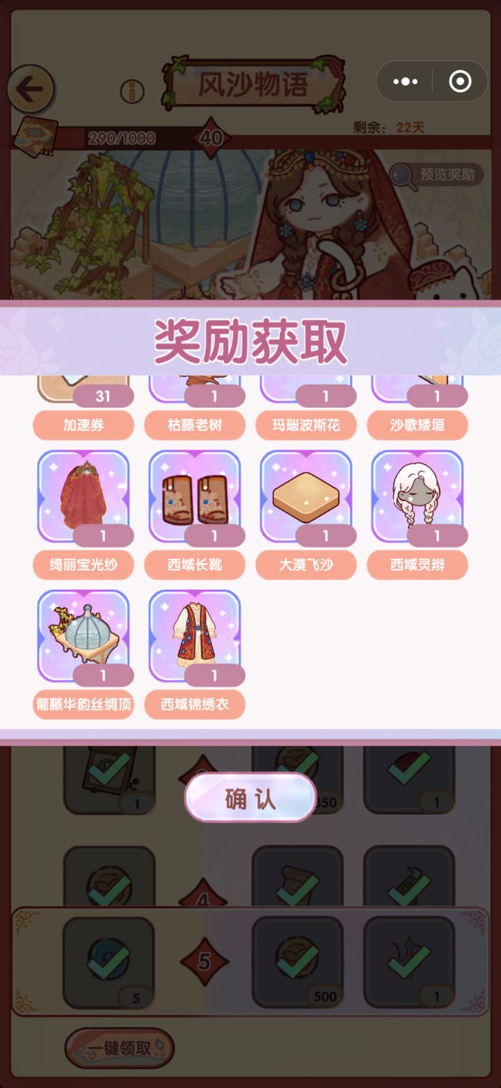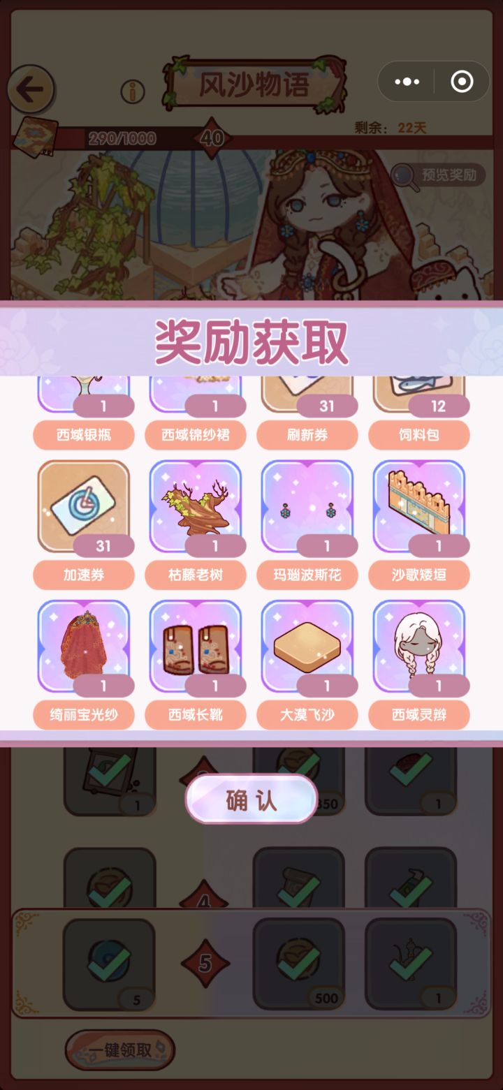 风沙物语1-40级高级奖励(30级购买高级奖励时误拿了,在此基础上➕200蜗壳币和头像框)这次的物语服装一般,异域风情算个卖点,有谁和我一样是冲着房子的装修和收集去买的 #我的休闲时光 #我的休闲时光日常