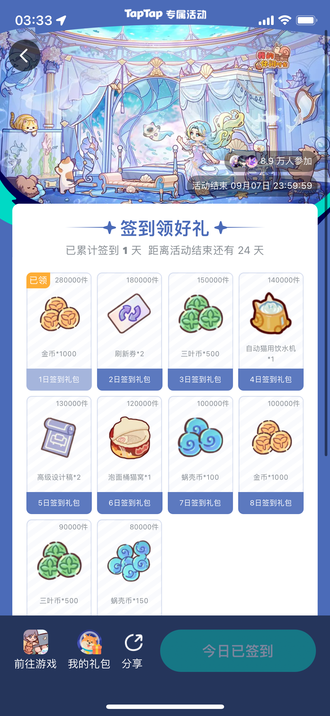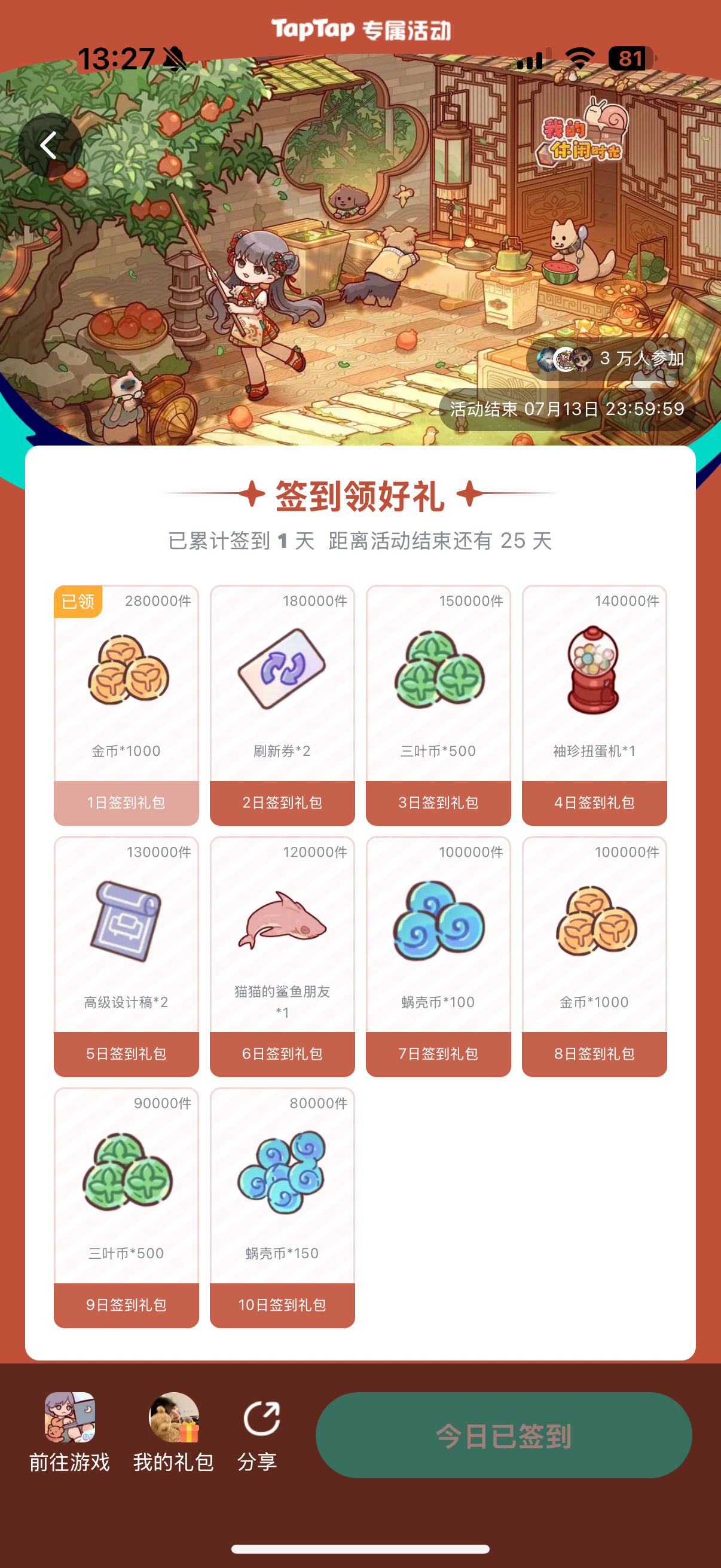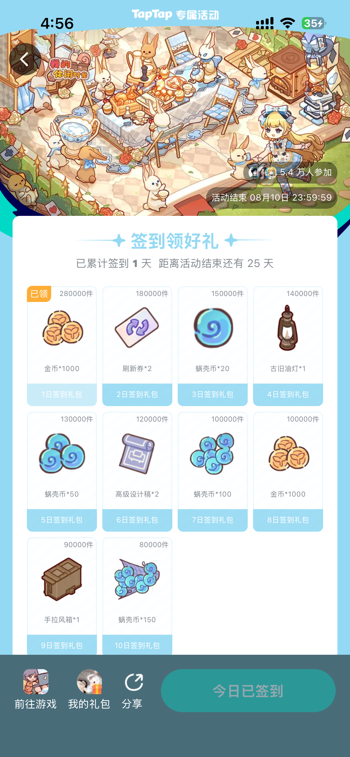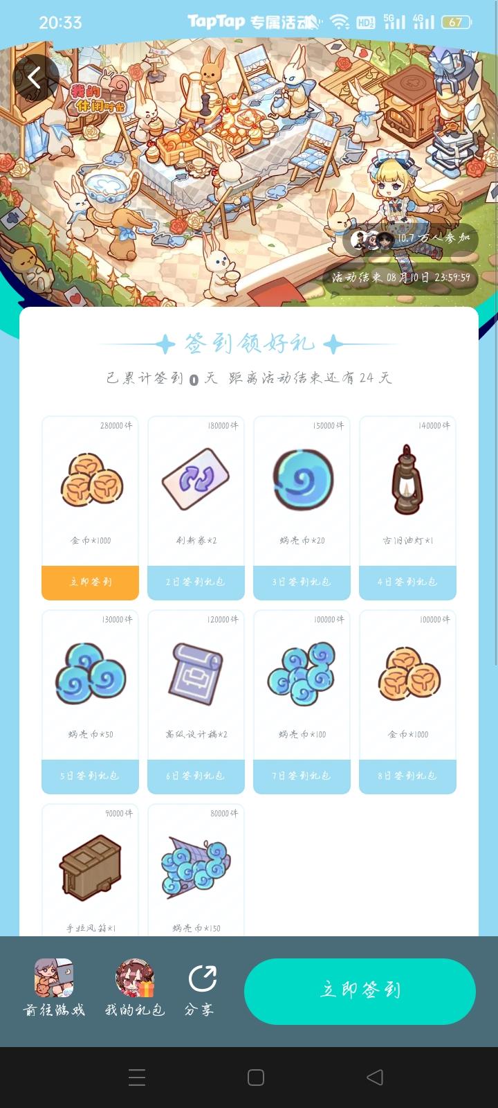 7月-8月签到https://www.taptap.cn/events/game-sign/bhgd4aa0?utm_medium=share&utm_source=copy&share_id=8EF7532A4BC5#我的休闲时光 #我的休闲时光签到