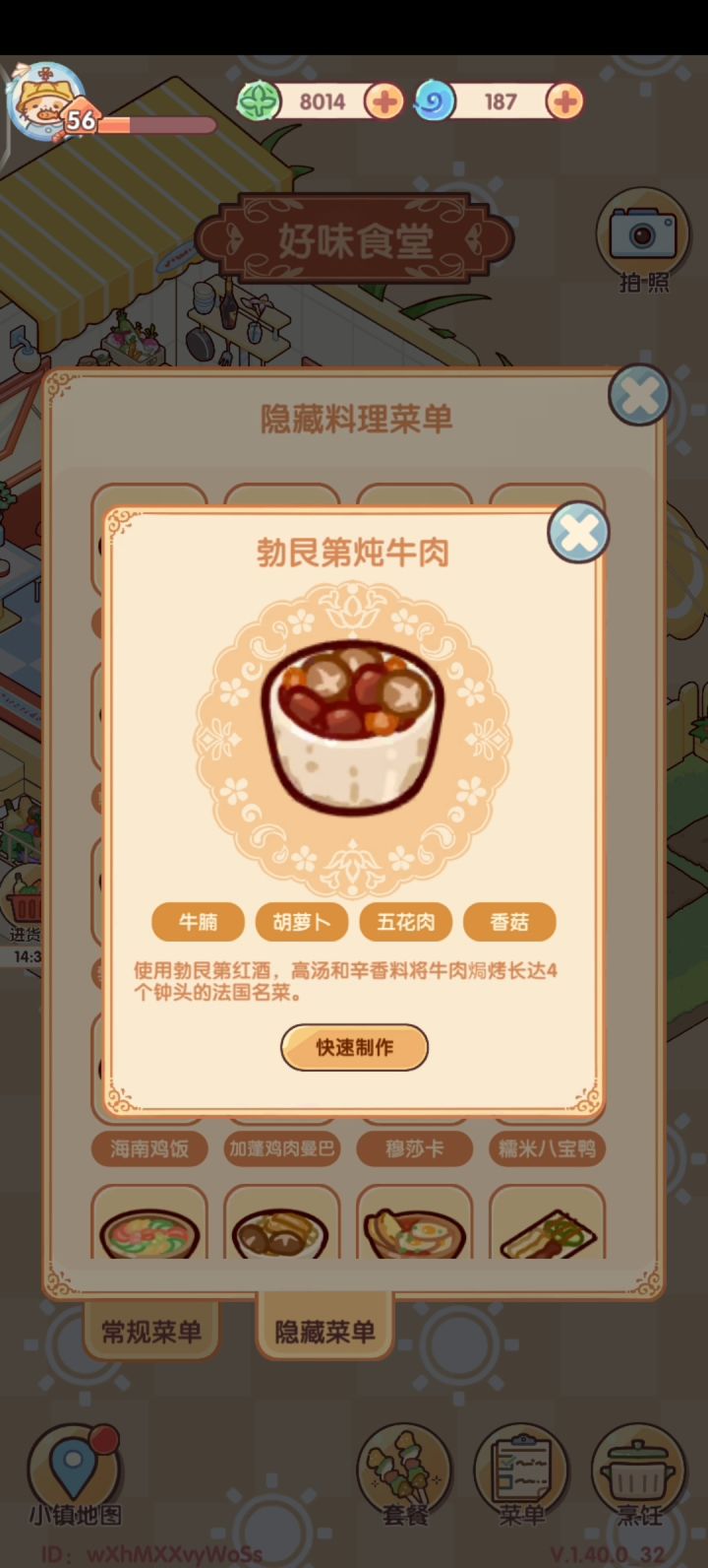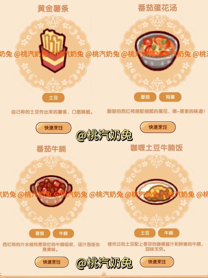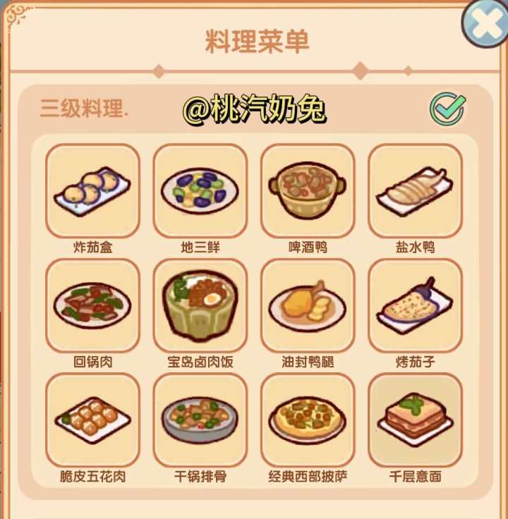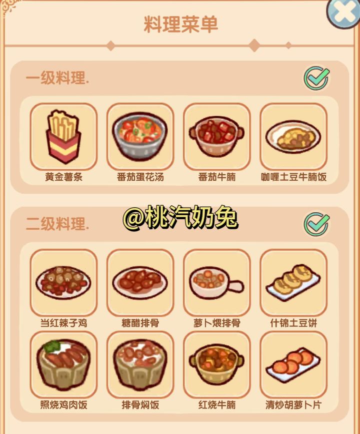 一级料理:图二二级料理:图三图四三级料理:图六图七四级料理:图九图十图十一隐藏料理菜单看下篇#我的休闲时光蜗居物语 #我的休闲时光 #我的休闲时光装修分享 #我的休闲时光创作官 #我的休闲时光隐藏菜单