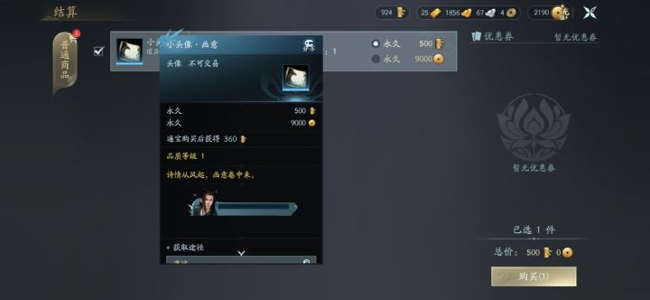 头像叫“画意”,有飘逸的长发和动态漂花。最适合的门派是万花成男,其他成男也不错。主要还可以使用500积分兑换,每天20积分20多天可以兑换,完成资历也有积分奖励。#剑网3无界 #我的剑网3无界
