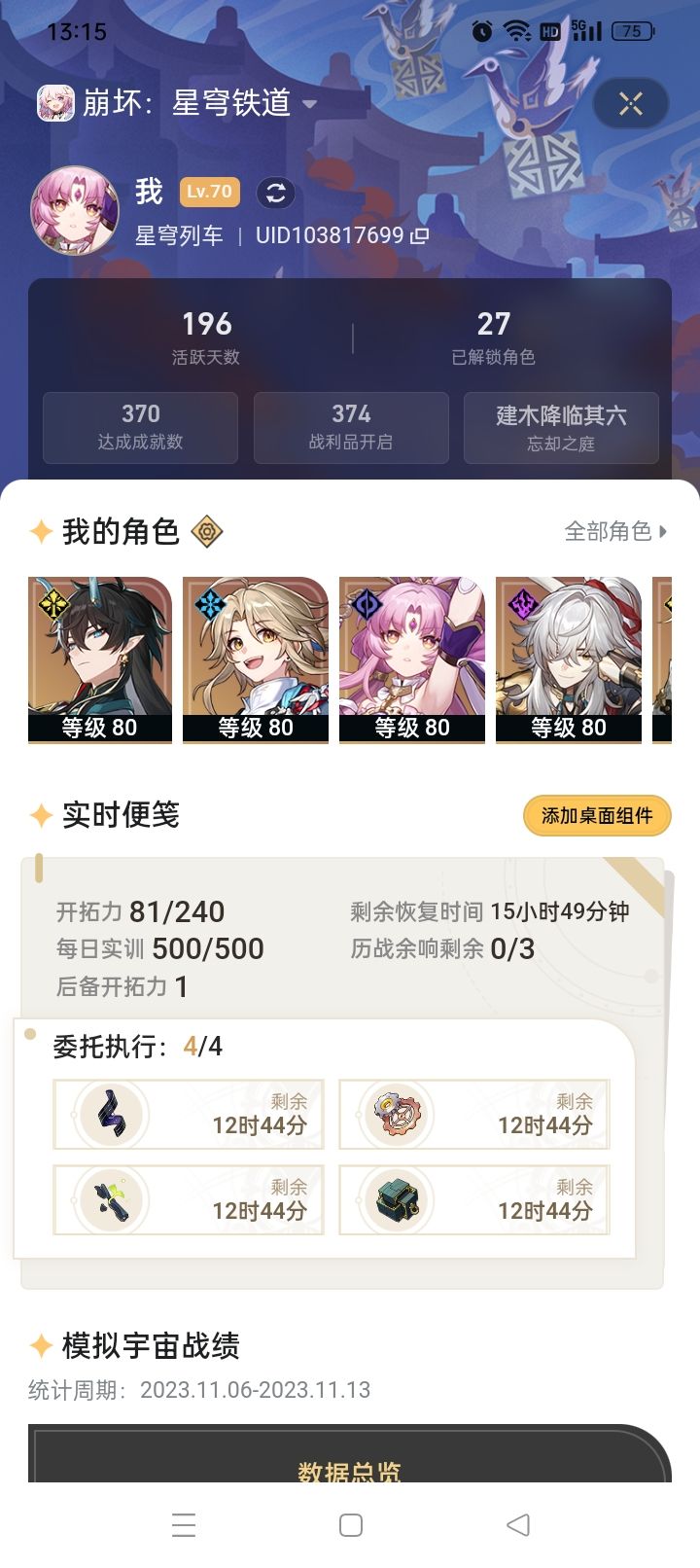 开服一直在玩,没七十级应该是体力没清完#我的崩铁开拓等级