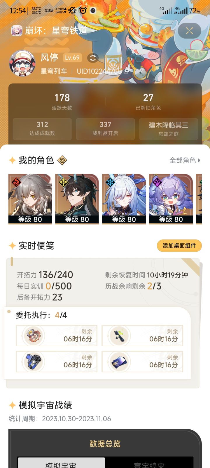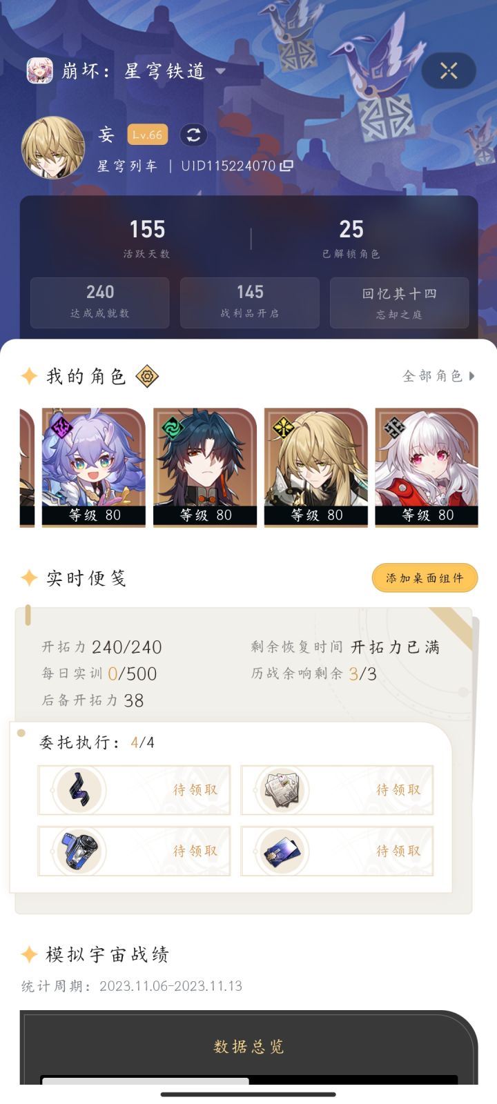 感觉铁道这个游戏遗器出货率极低,刷遗器已经很难抱什么希望了,要么就各种防御套出双爆,太搞心态了,找不到游戏目的,每天上线清清体力做做委托,好像没有其他事情值得做了#我的星铁开拓等级