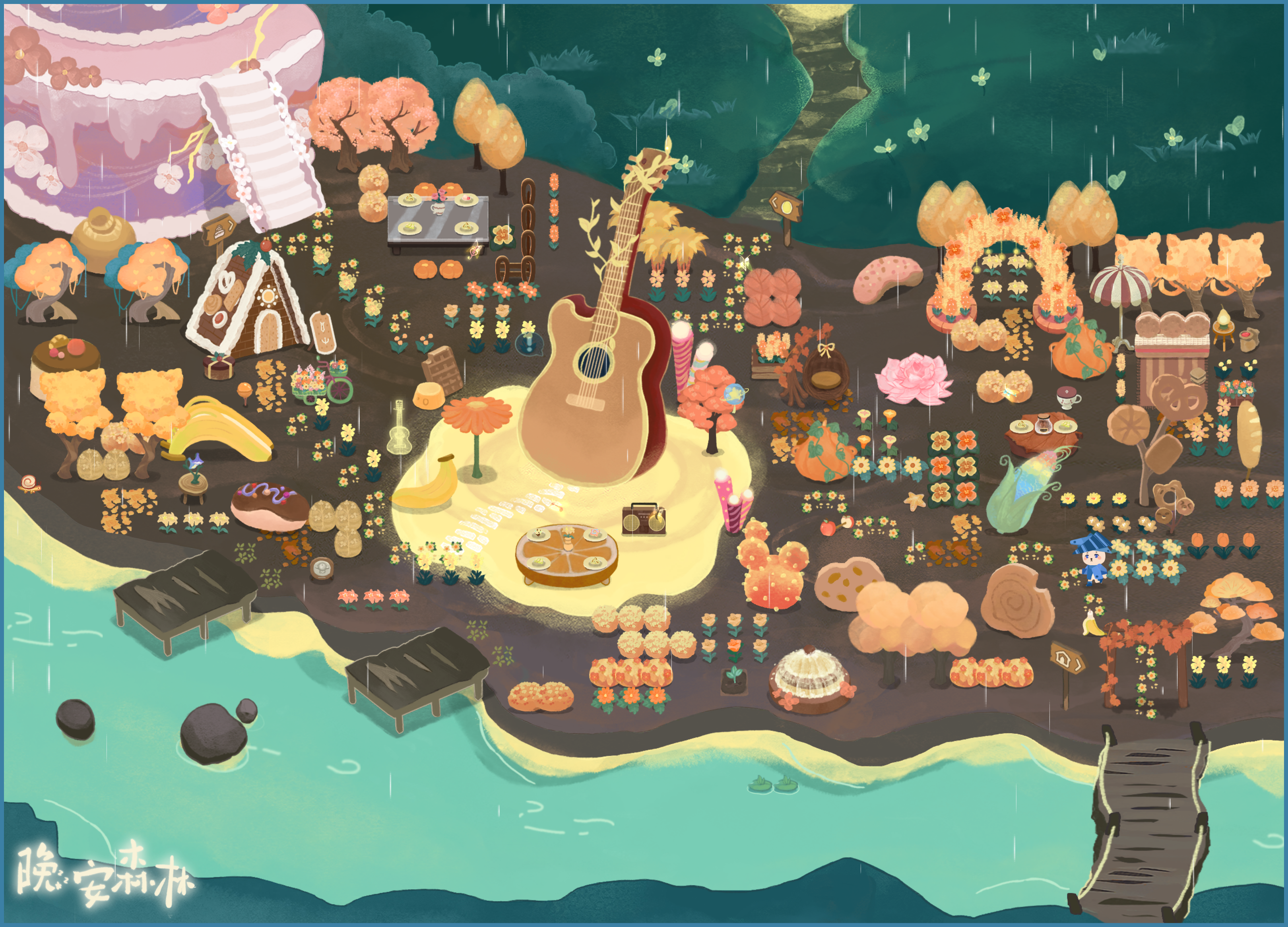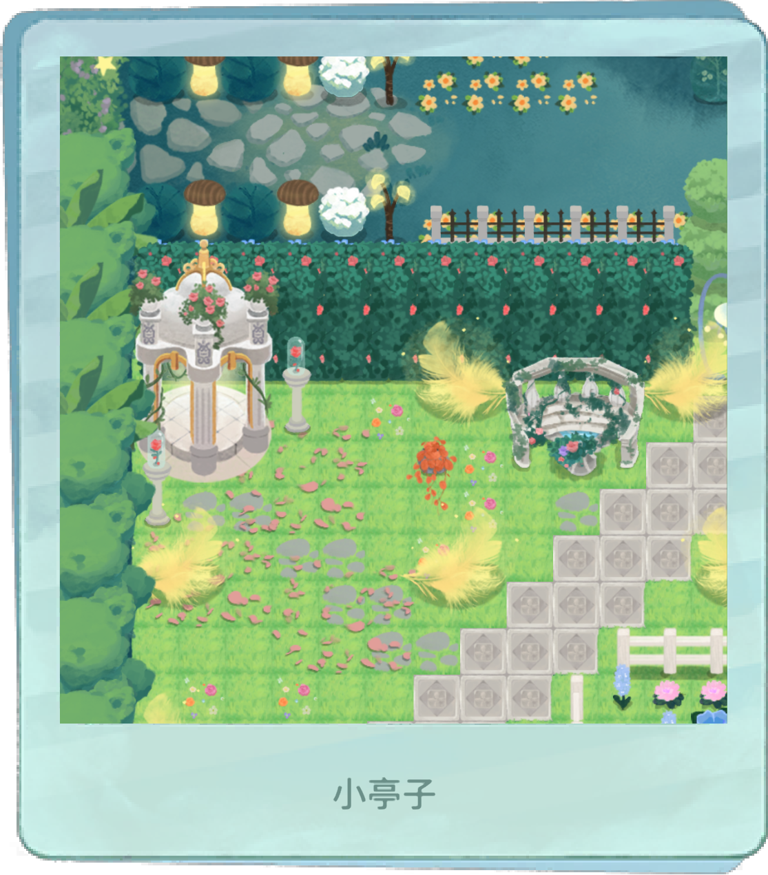 终于抽到了亭子,完成了甜心河畔的装修,下一步该室内了,肝吧#我的晚安森林 #晚安森林布景