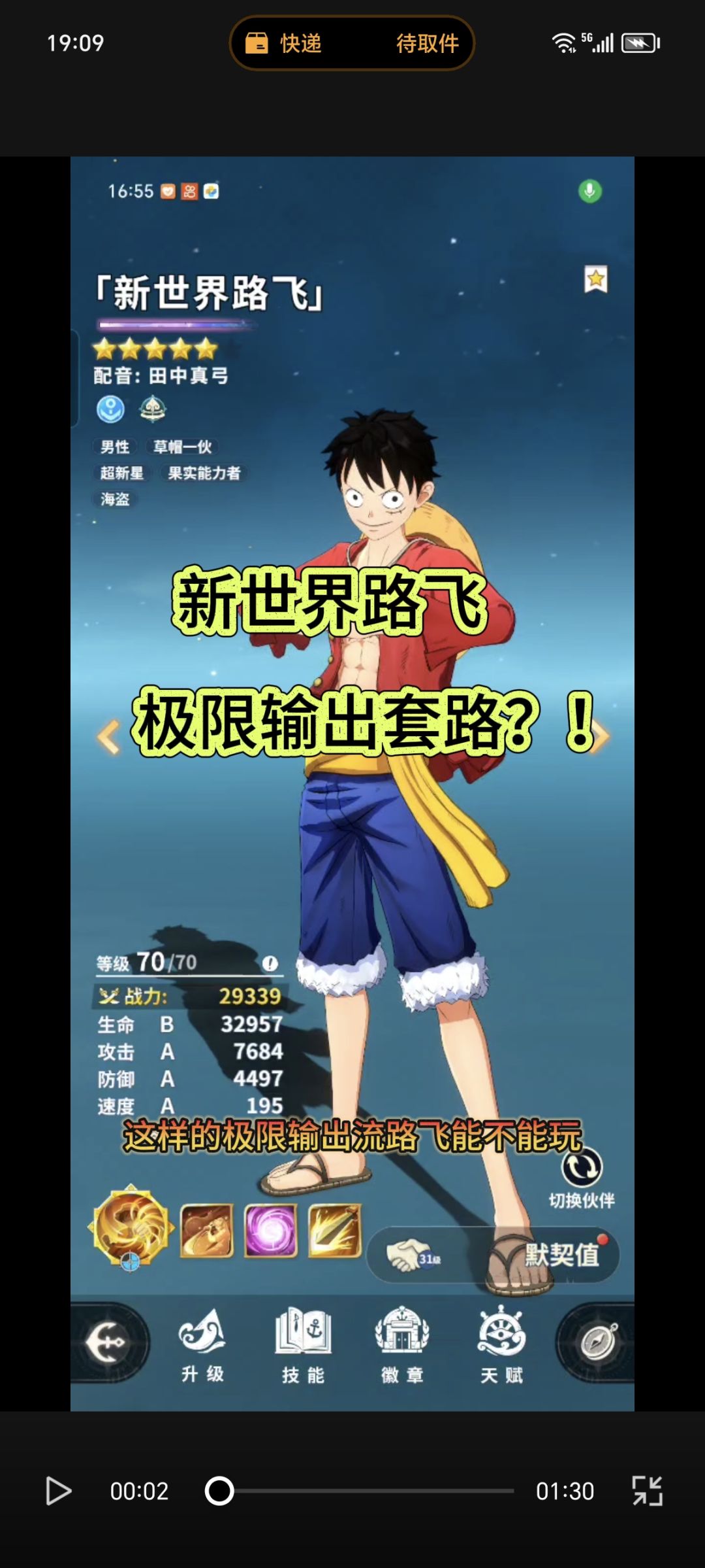 这就是新世界路飞吗!伺机徽章匣加对应近满级特训,策划要不要考虑加强一下。。。 #我的游戏日记Vol7