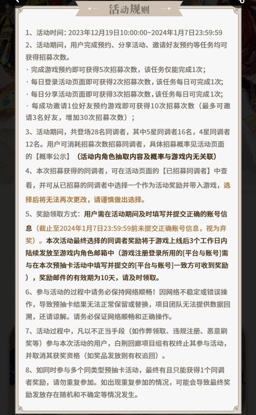 预抽卡结束了,没有选的,没有抽的,还有等着开服再选的,通通,全部全部,都不能选了。不要再说什么没提示,活动里面写得很清楚,7号结束,请不要在社区和评论区发疯。#我的2023游戏大赏#攻略#游戏安利#游戏推荐#游戏讨论#游戏福利