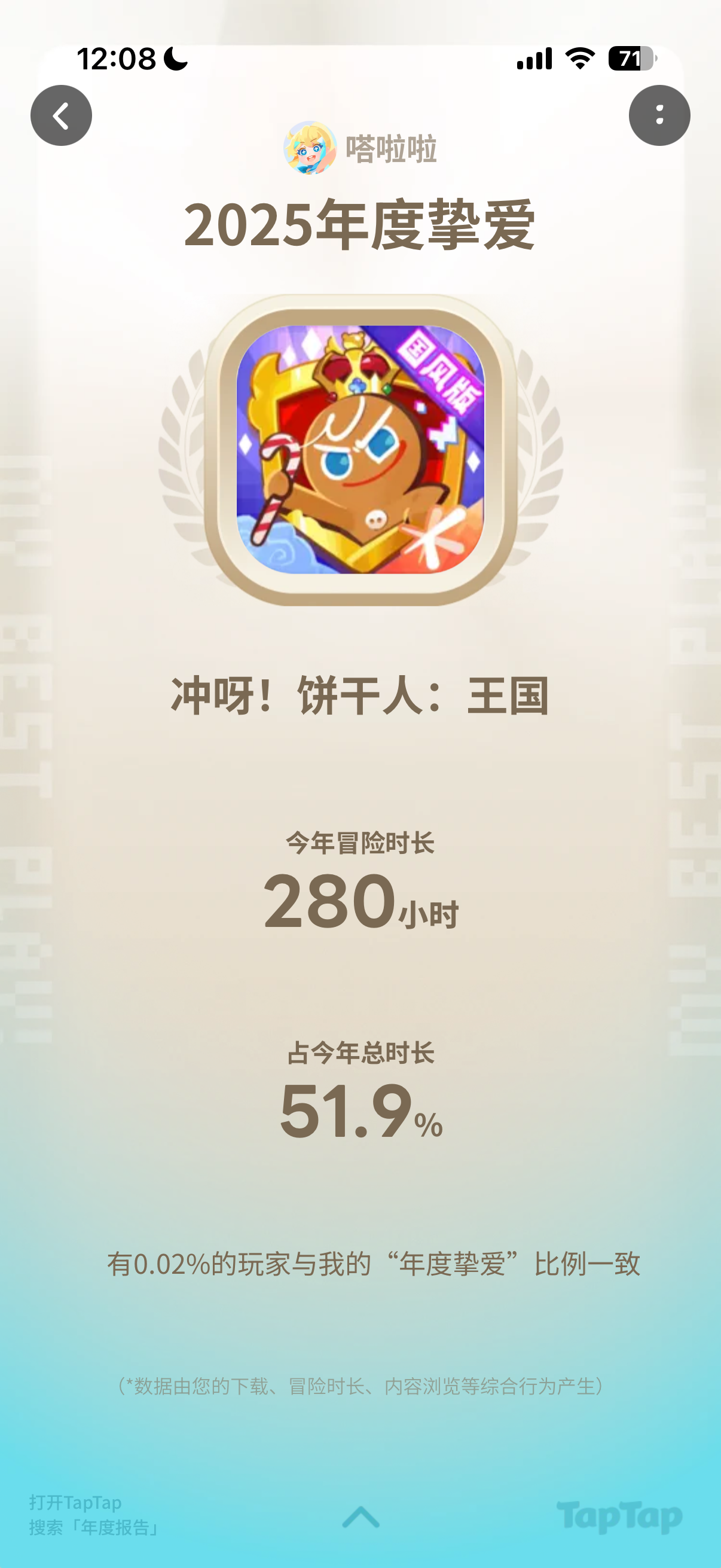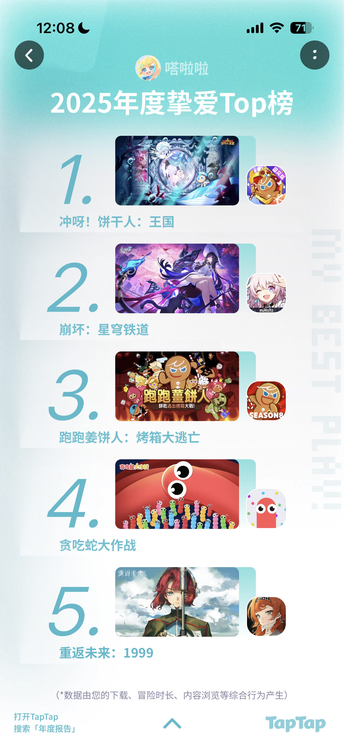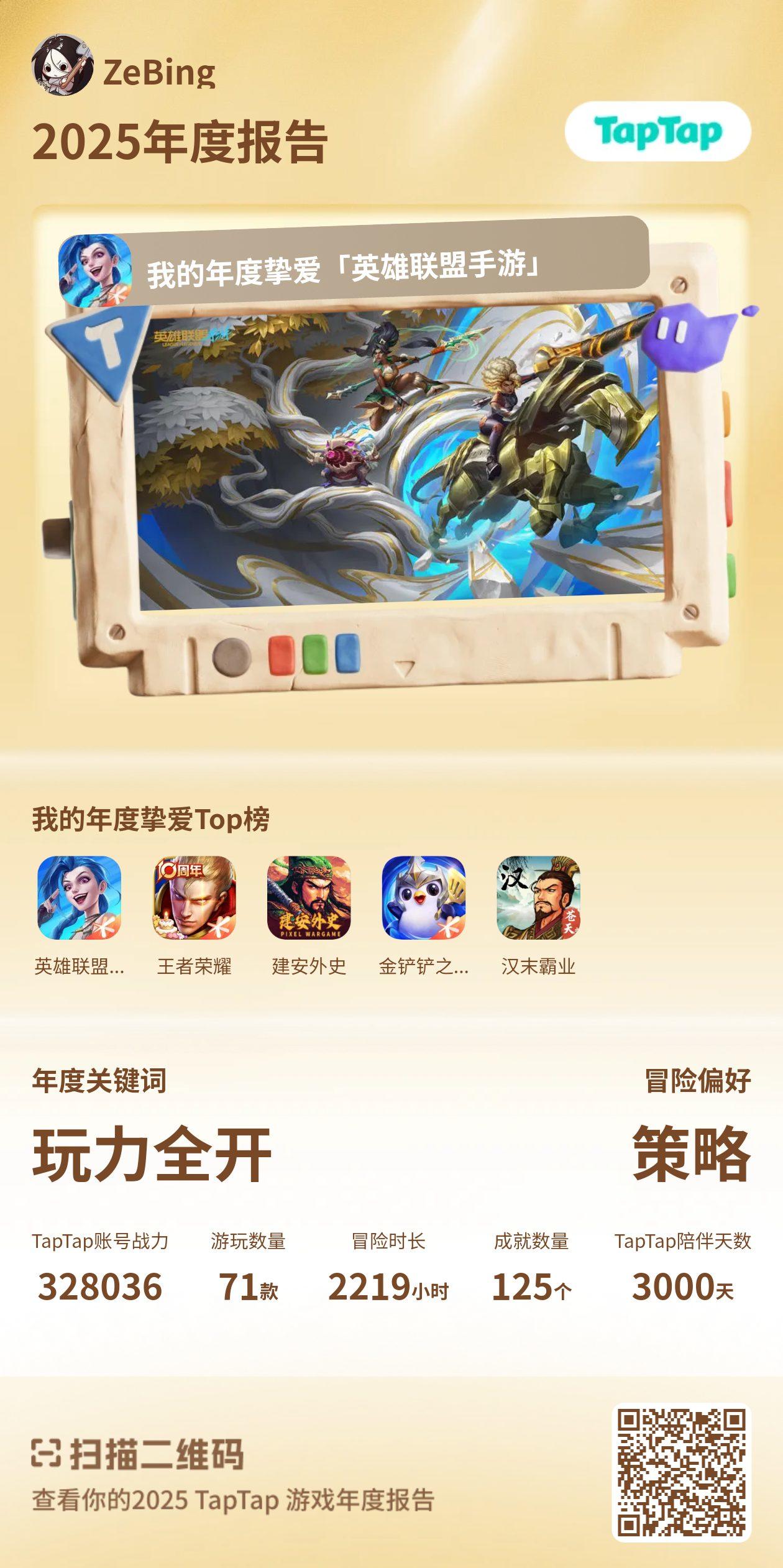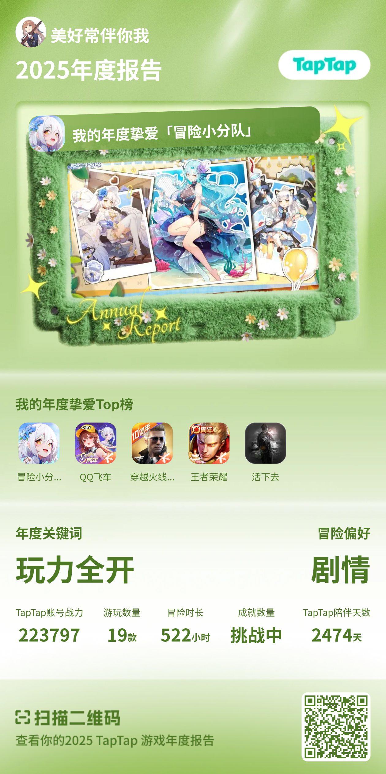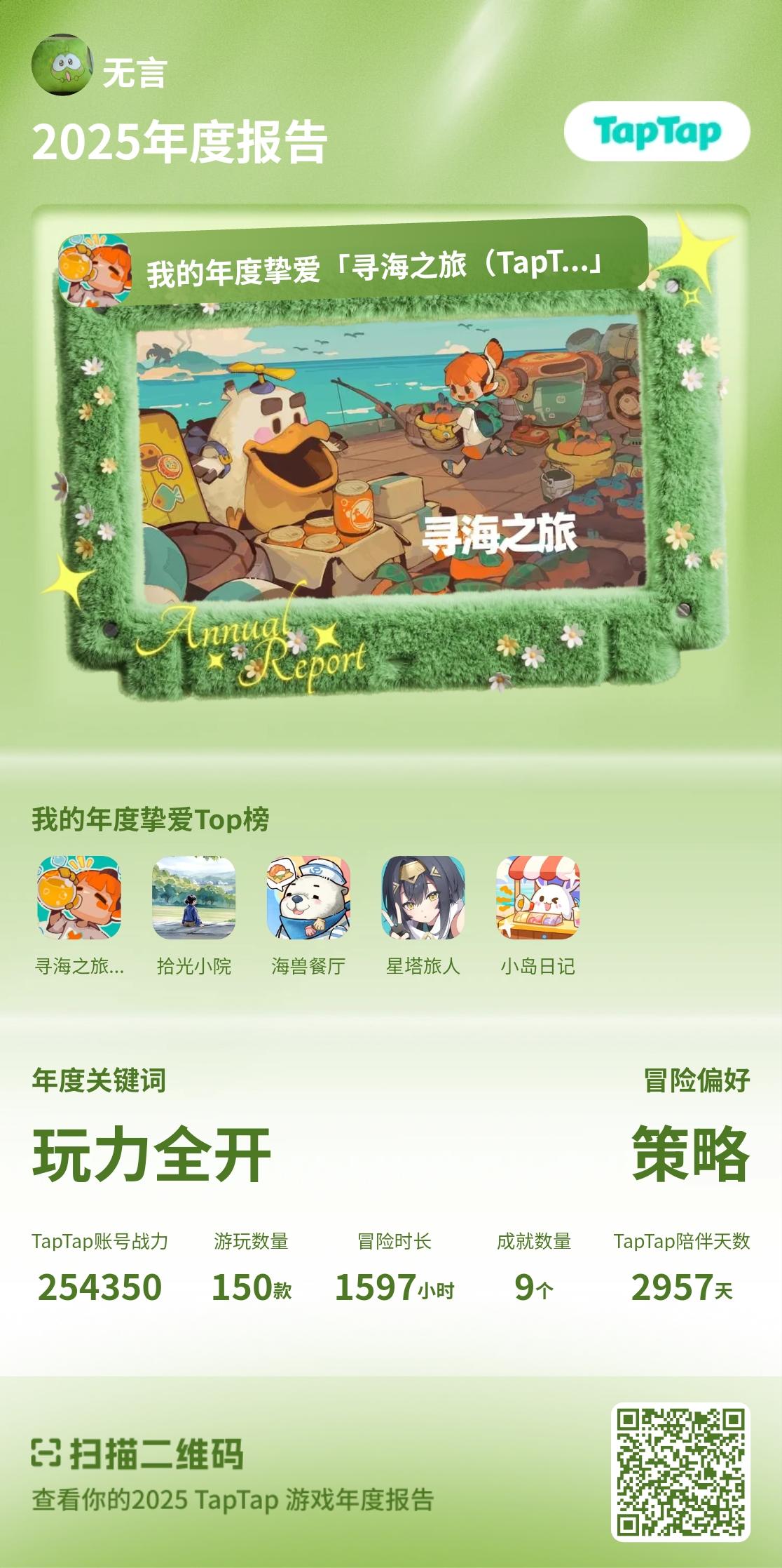 ✨ 点击解锁你的专属游戏报告「」致又相伴一年的 Tapper:当你在探索宝藏新作时,我们记下了你的期待;当你挑战关卡、突破自我时,我们见证了你的成就;当你认真写下评价、分享感想时,我们收藏了你的心声。又是一年,你的专属「2025TapTap年度游戏报告」已加载完毕!这不仅是一份报告,更是属于你的冒险存档——记录过去这一年,你作为玩家、作为探索者、作为同行人,那些闪闪发光的冒险