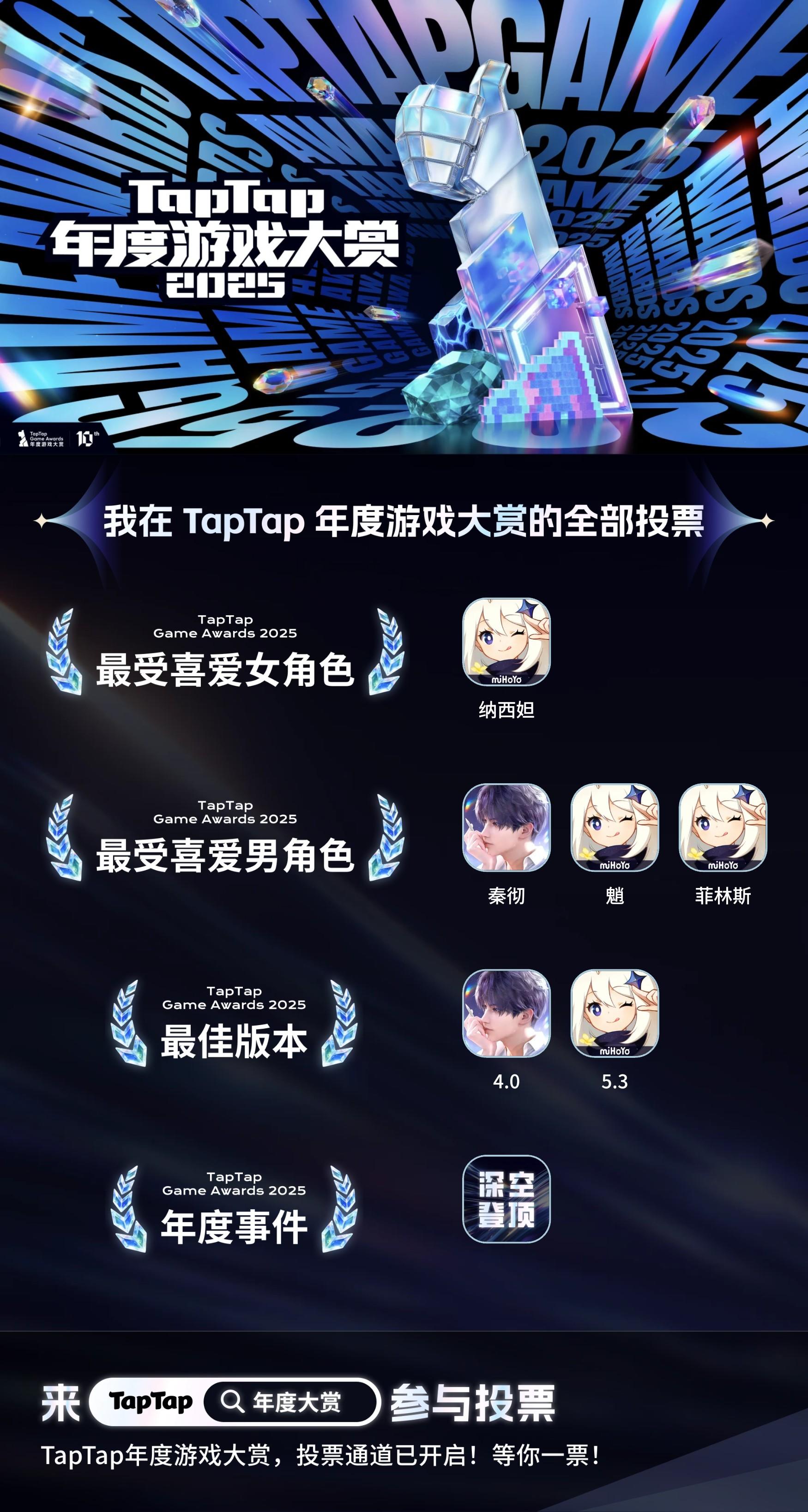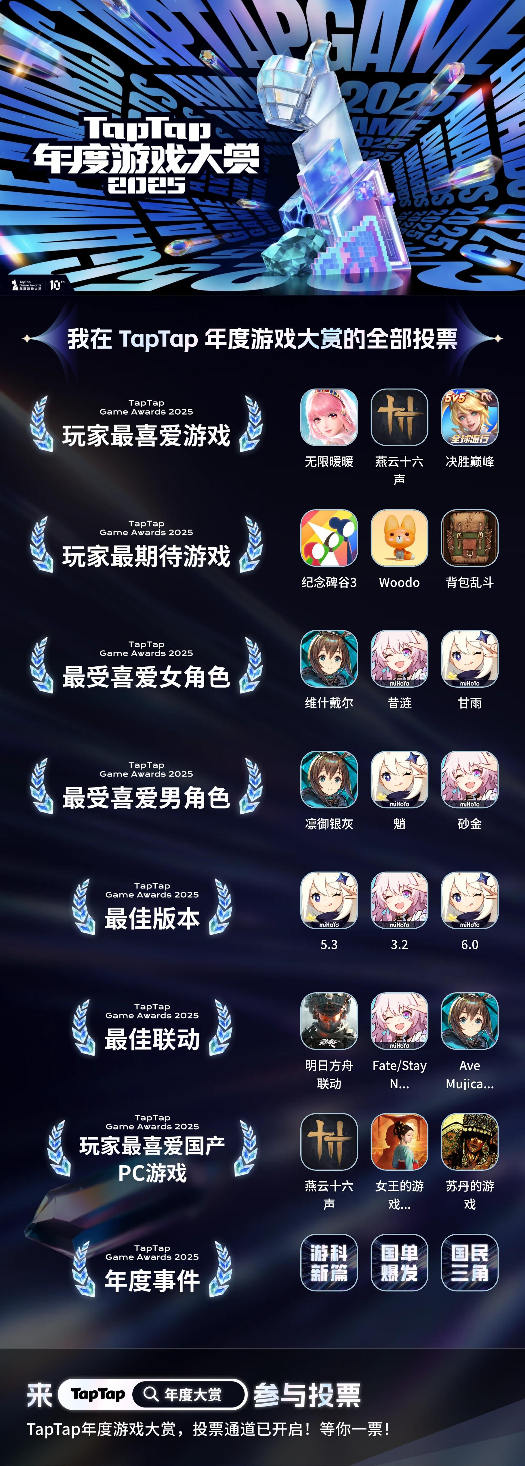 猜2025年度最佳游戏,晒投票结果赢周边福利!