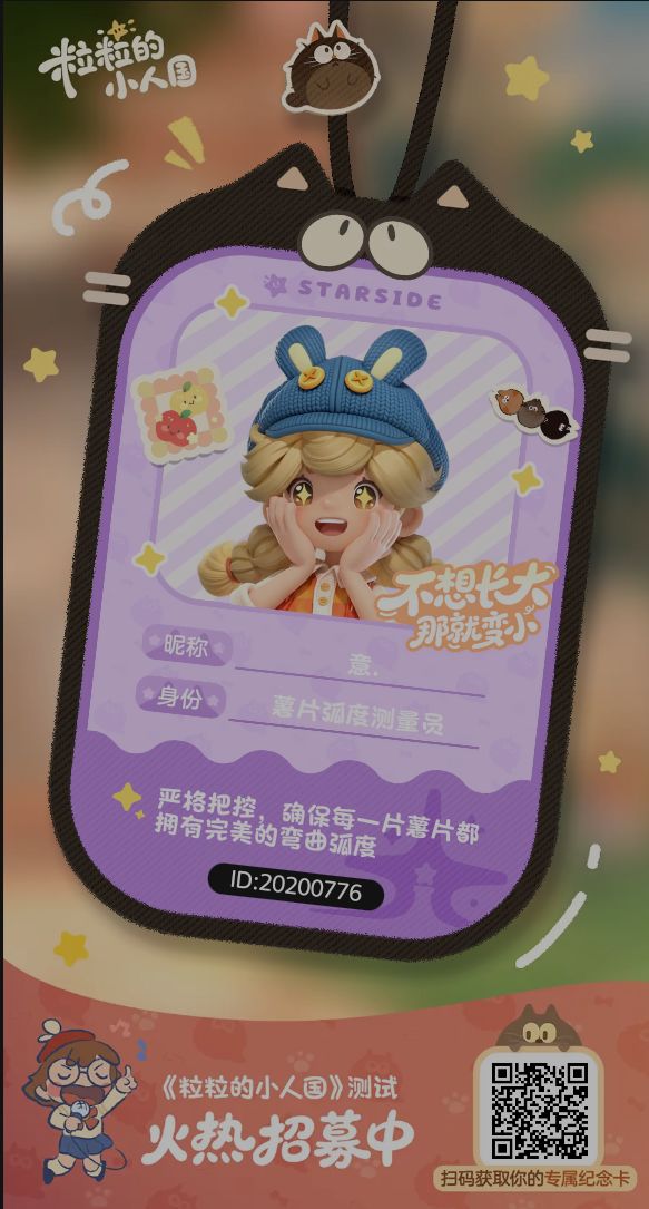 【正式申请】申请《粒粒的小人国》内测资格:愿做一名细致的微观世界共建者 尊敬的官方团队: 我是一名自9月24日游戏首曝以来便持续关注的玩家。《粒粒的小人国》以其独特的“皮克斯绘本风”美术和“微观视角探索日常”的创意,深深吸引了我。每次看到新内容发布,都让我对这个温暖、治愈的微小世界更加向往。 我为何如此期待并想参与测试? 因为我不仅是被游戏吸引,更是被其背后的理念打动: 1. 视觉与情感