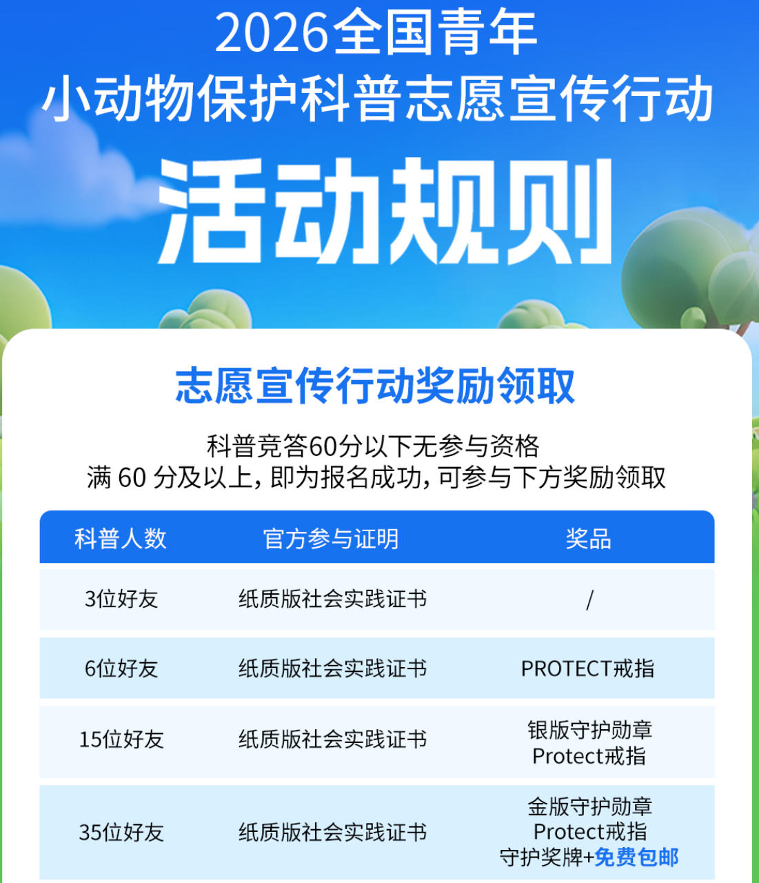 大家有空来助力一下,凑齐35人就行,谢谢!🙏🏻 #国际珍稀动物保护日#动物#免费#戒指#证书