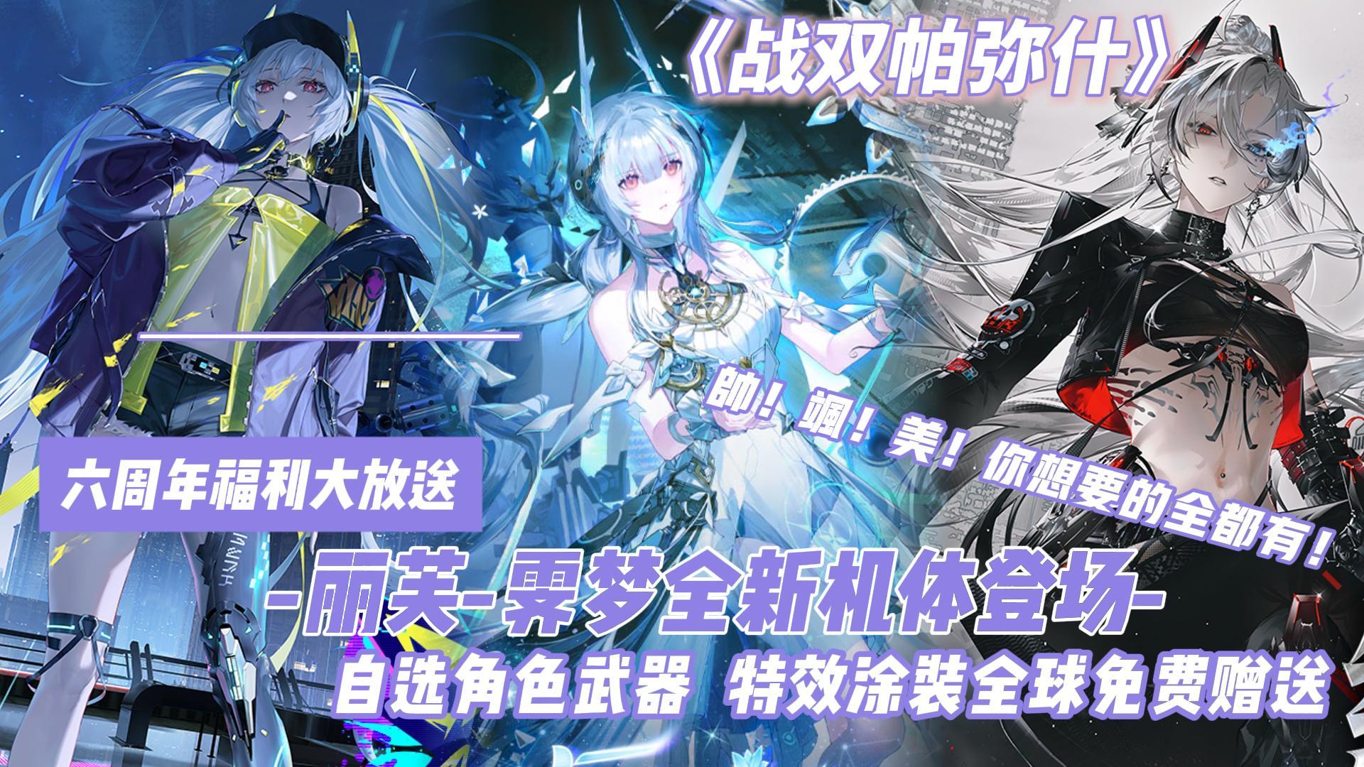 #战双帕弥什创作征集令 #战双帕弥什 #战双帕弥什周年庆 #战双帕弥什六周年 #游戏安利 #游戏推荐 露西亚新皮肤,只要以前氪过一块钱,上线就能直接领取,而且在送了露娜特效皮的同时,还出了个六元解锁露娜本体的礼包 新手签到有着专武自选,而老玩家也有,还无需跟着签到,直接邮件补发 除此之外,还有登录10连和主界面场景直接领取,免费14抽,普池自选,帮助我们补齐各属性角色 绝对是各位玩家回坑入坑最佳