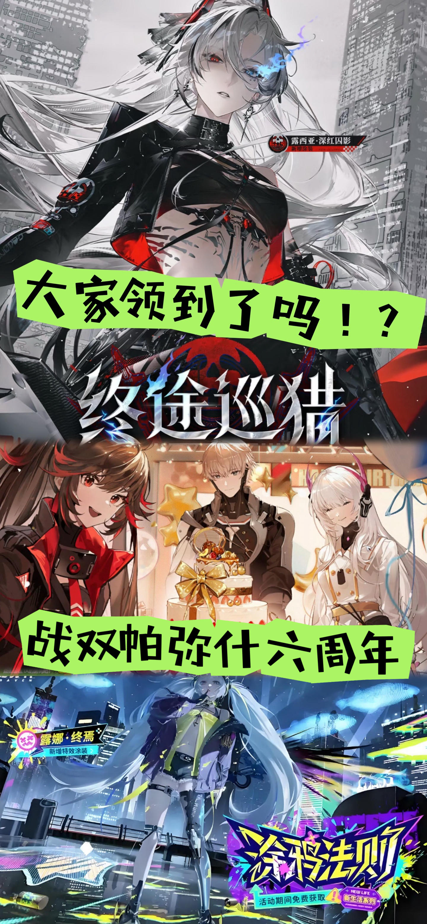 我的妈,战双六周年了,新版本“眠于厄寐之境”13号就开了。这次新出的S机体丽芙·霁梦,白毛水晶造型,我直接嗨老婆!战斗方式也挺特别的,为了配她,还出了个新BOSS“墨利诺厄”给你打,又加了个S辅助机叫“浮浮”,感觉又能研究新配队了。重点来了,皮肤!露娜终焉特效皮【涂鸦法则】,活动免费送!免费的!然后伊什梅尔的【夜诏终章】和新丽芙的【莲歌行】也一起上了。哦对,首充随便充多少,直接给深红囚影的【终