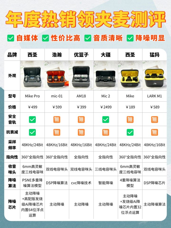 中高端领夹麦克风性价比排行:猛犸仅排第四,第一名意料之中
