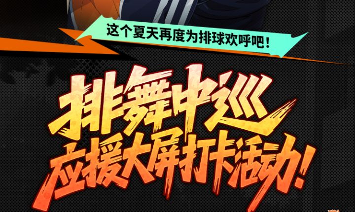 这个夏天再度为排球欢呼吧!💙喜欢小排球的你看过来!舞台剧排球少年+万达广场+排球少年手游为排粉送上好礼,万达广场大屏打卡活动第一轮即将启动!✅ 即刻行动,解锁排球限定好礼:1️⃣ 打卡大屏: 前往指定万达广场,捕捉任意大屏上舞台剧排球少年的身影!(屏幕照片+自拍更易出圈!📸)【第一轮大屏点亮时间】8月2日 - 8月13日 指定万达广场即将点亮应援大屏!详情请见下图2️⃣ 带话题发布:#打卡活动