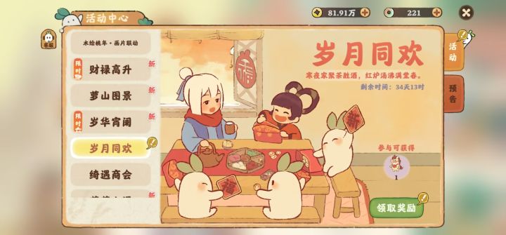 各位桃源乡的山民们,小花为大家准备了春节社区活动预告日历!也是“把日子过成桃源”的四个步骤,一起来让这个春节过出桃源的暖意吧~!每场详细活动说明,敬请关注后续官方动态萝~ 活动一览:📌 第一步|贴纸素材大放送(2月12日~3月7日)60+游戏内图标素材全新公开!美图秀秀上新全新贴纸专辑、@桃源客服驿站 置顶动态也可获取素材,用贴纸制作美图投稿,抽京东卡奖励~ 📌 第二步|招募财神!!(