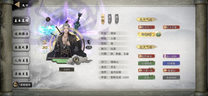 #抢夺噬魂剑 无任何插件、mod,原版+DLC,图截完晚了,金丹初杀的不是最快夺剑的,优势在简单(可能有BUG):①先筑基华封触发噬魂剑事件,然后不升境界,你不升,剑主也不升。②这中间按照下面步骤慢慢走过程。③(简单的关键点,不确定是不是BUG)我准备的比较慢,然后触发了大事件,神仙打架,拜师传功(8年多的时候),然后我升了结晶,剑主却一直没升,中间我就一直进行下面准备步骤(本来准备跨一