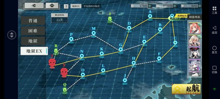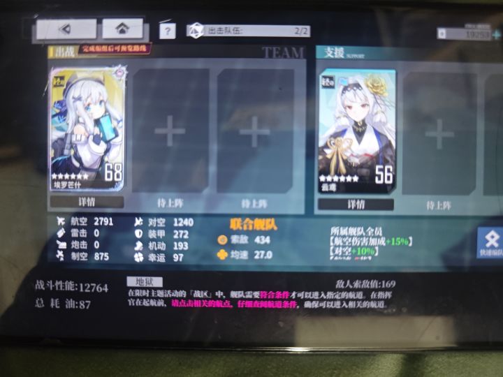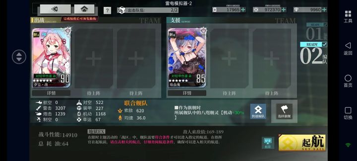 首先傲娇线最短线路是ABEHLNS,7战话不多说,先看低耗的关键条件:1.重巡≥32.索敌≥8003.奥鲁加<44.旗舰为战列<23和4都很好达成,2就是金马桶的问题,最麻烦的反而是1。如何在3重巡的情况下压低油耗?由于1245点没有重甲,所以这个可以用任意前排高练驱逐+雾都(雾都很重要,能奶又是重巡)通过,雾都的练度没啥要求,达到35能进活动就行,我图里这个是挂了一晚上升级的,驱逐