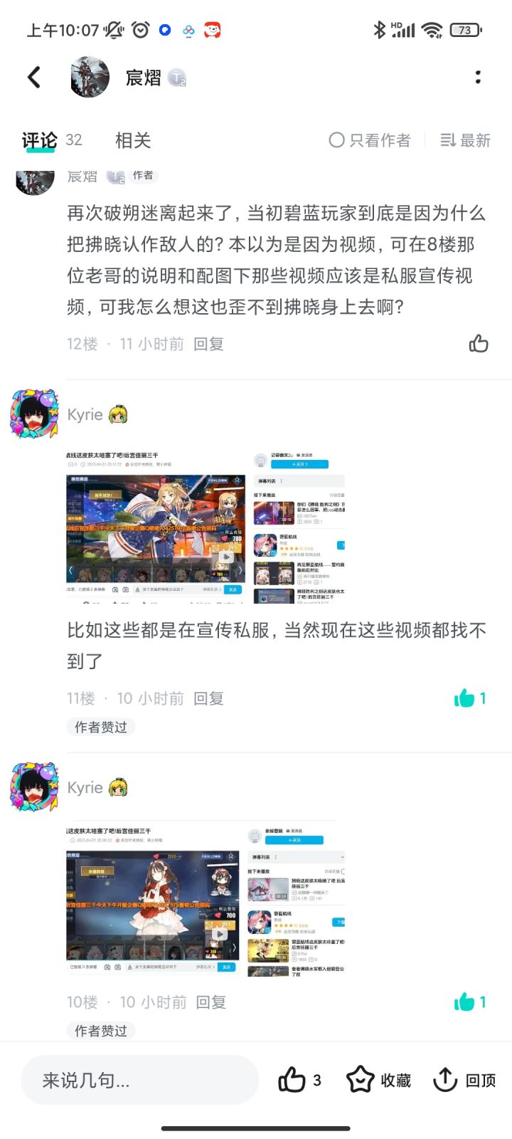 是真不想让人找到关于那时的真相啊?直接给我帖子仅自己可见了,就我目前找到的线索来看,如果2楼老哥说的视频也是指那个后宫佳丽三千的话,我可以说当时很多碧蓝老哥被鸡社管当枪使了,因为这就是个碧蓝私服宣传视频,看到最后面那个拂晓后宫佳丽三千话题了吗?当时应该有人刻意将私服宣传视频说是碧蓝rsq皮肤视频,并且说成是拂晓干的,拂晓在进行恶意竞争,同时将玩家对和谐的怒火导向了拂晓,而很多碧蓝玩家也懒得分辨是真
