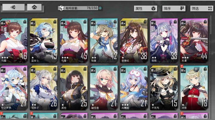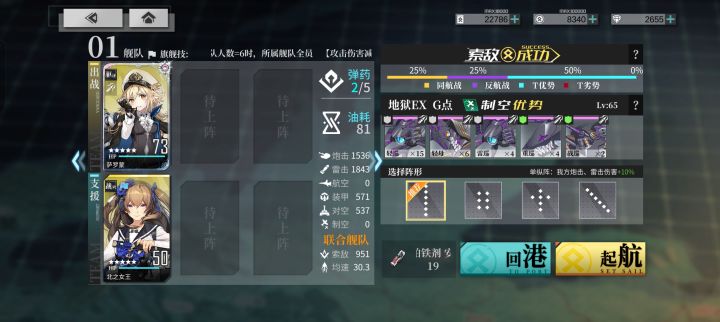 练度如图,航母主要练的太太,吃喝喂芯片喂到50多级,没什么练度,M点打不动,只能打打L点,没法随机沟,一对大拉菲+有点儿用的战列,二队吃喝飞鹰+后排奶妈+2 个后排雷驱#拂晓胜利