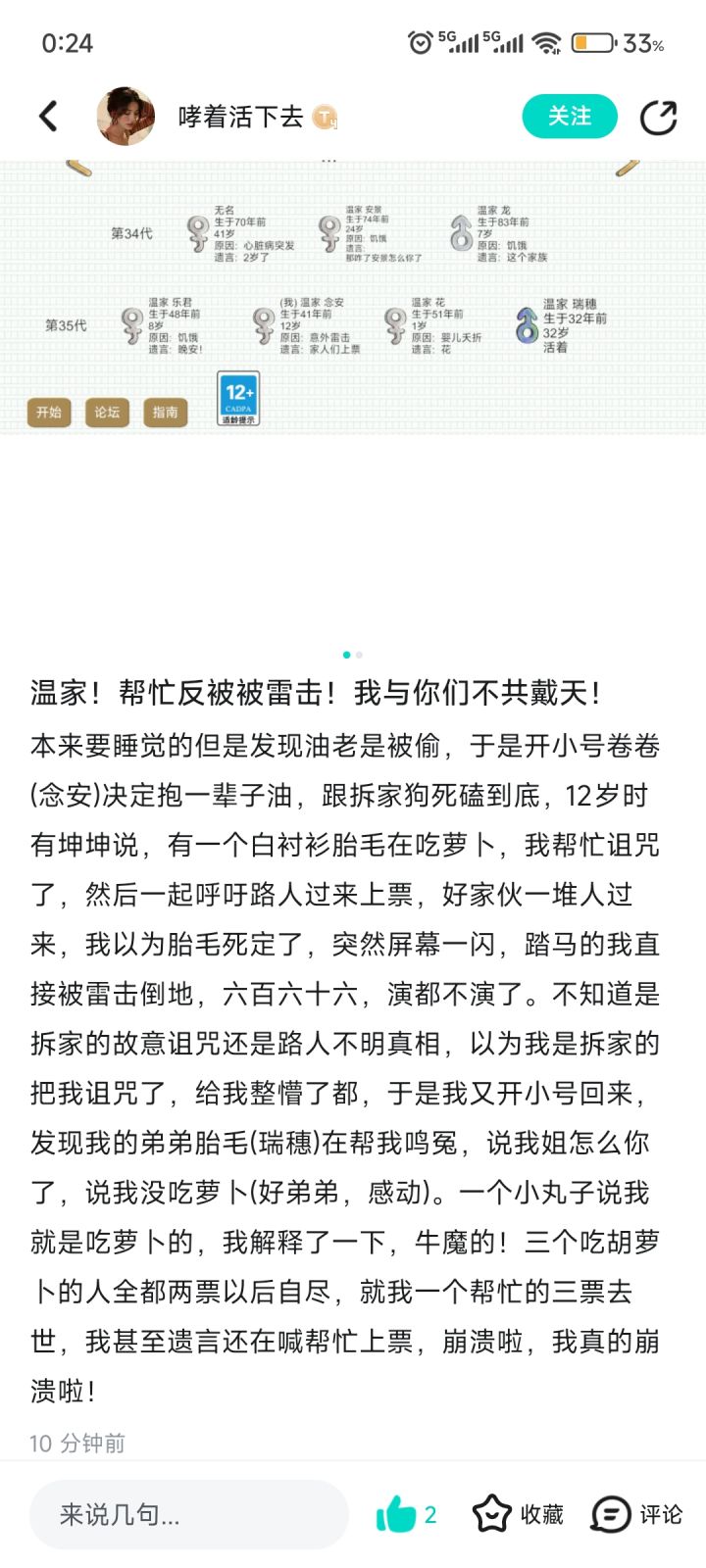 我曾在长命锁努力地干活了几辈子,这也许是我最沉默不知所言的一件事。它的辉煌与平和我曾见过,它的败落与阴暗我曾识过。七八月重新玩回这个游戏,我震惊于春夏的千代,重燃对这个游戏的热情,为自己的兴趣买单,付出日夜时间。在春夏达成五千代目标之后,春夏所遇到的所有为了家族奋斗的人给予我继续玩下去的动力,我乐此不疲,认为家族总是一心的好,开始为长命锁努力。在此之前我并未了解过所谓“纠纷群”,对酒厂的所作所