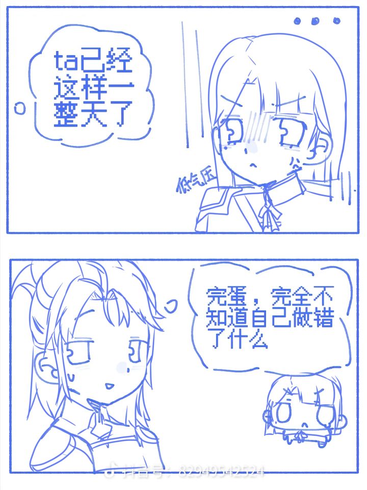 拉维耶:死脑筋快想啊。索菲亚:气鼓鼓#同人 #拉维耶 #索菲亚 #铃兰之剑为这和平的世界 #同人