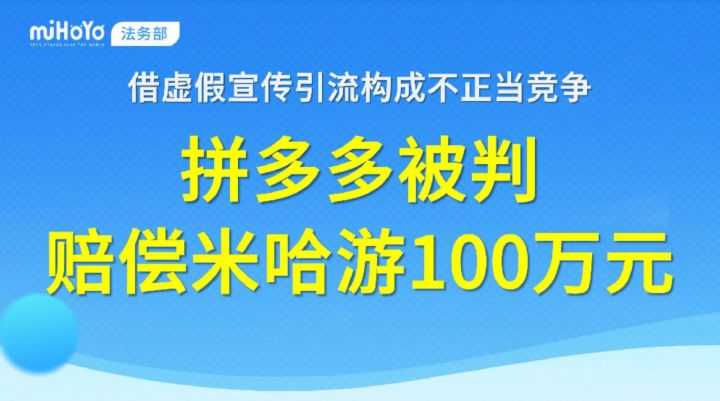 米哈游诉拼多多案终审:判赔100万认定双重侵权