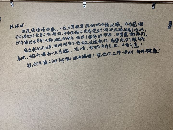 谢谢 @喵喵喵的鹿 @https://www.taptap.cn/user/57493927花了很大的精力,精心制作的礼物!感谢您对奶牛镇多年来的陪伴和支持!我们会努力哒!奶牛镇的小时光,我们都是一家人!#模拟经营 #休闲游戏 #奶牛镇的小时光 #拼豆 #游戏周边