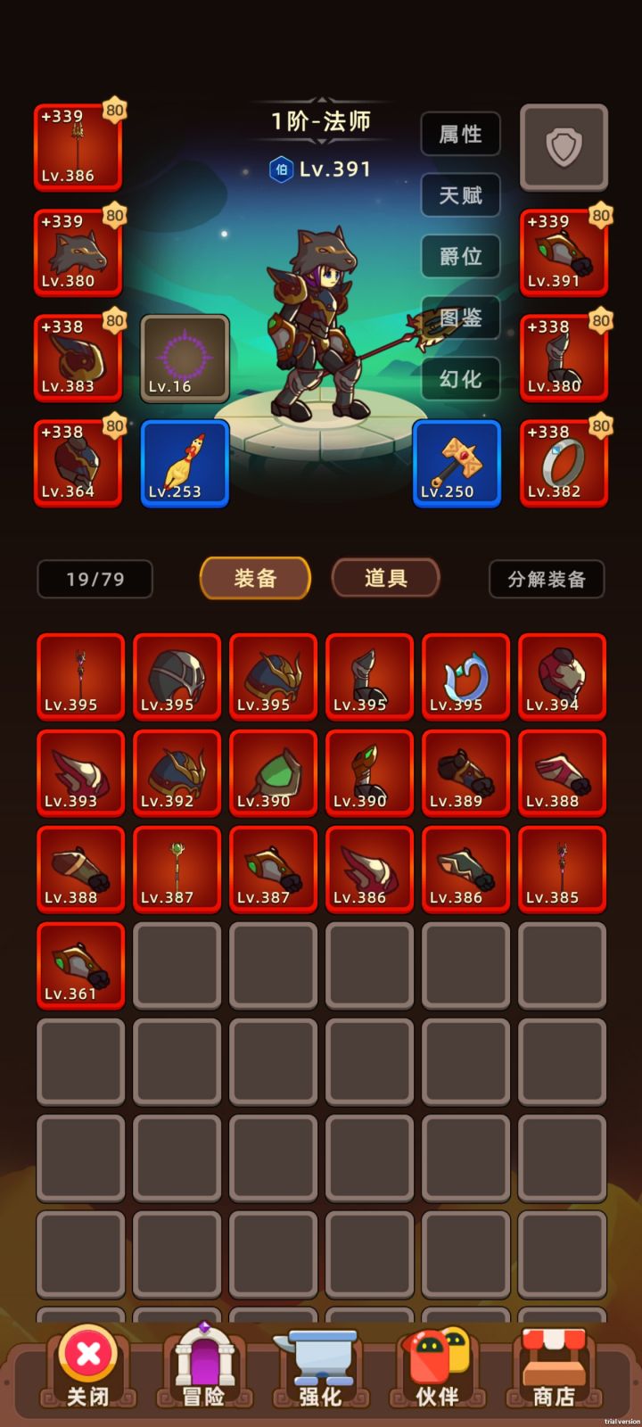 #挂机不能停 攻略其实大部分都有,我就提几个比较容易踩得坑 第一,新手不用纠结用什么套装,挂机一天提的属性比那个多多了。 第二,卡关了就建议去洗装备属性(红色装以后再洗),然后就不要换装备了。 第三,这游戏战力虚高很严重,不是说战力越高越厉害,像连击就是无用的数值,打怪推关怎么舒服怎么洗,暴击的要求是不出白字,爆抗的话是打小怪不被一刀秒 第四,升阶什么时候升,我的建议是等级到了就升,不用