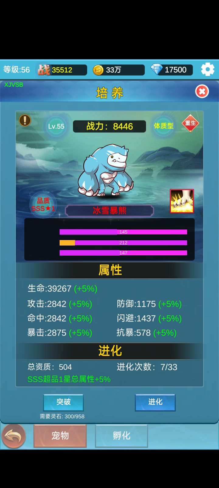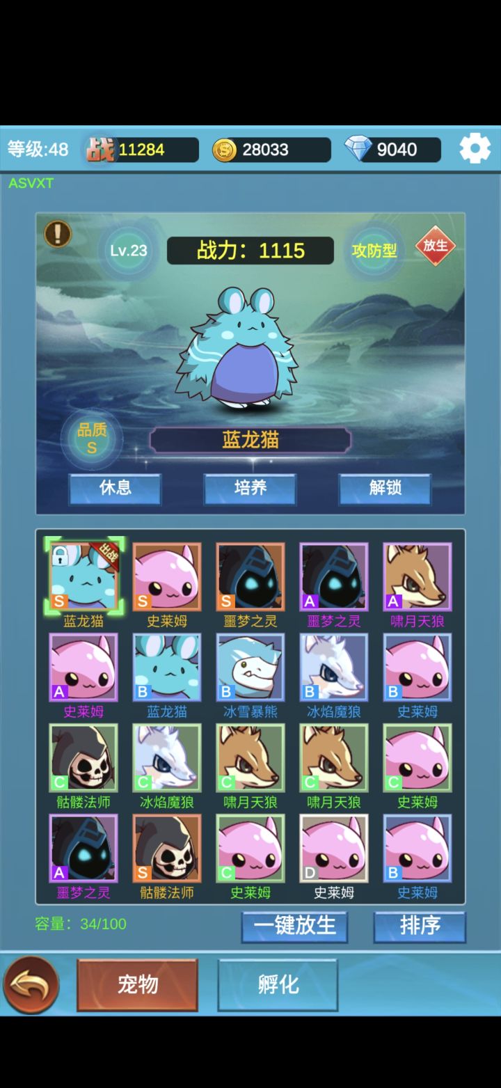 宠物三蓝龙猫,如果有敏捷高的宠物,可以俩龙猫,技能俩个初始,弱化毁灭圣盾守护,其他可有可无。 闪避首先叠概率然后数值,暴击叠数值其次概率,优先级:闪避率,暴击点,暴击率是,闪避点#游戏日常 #攻略 #挂机闯关无限进化TapTap测试版