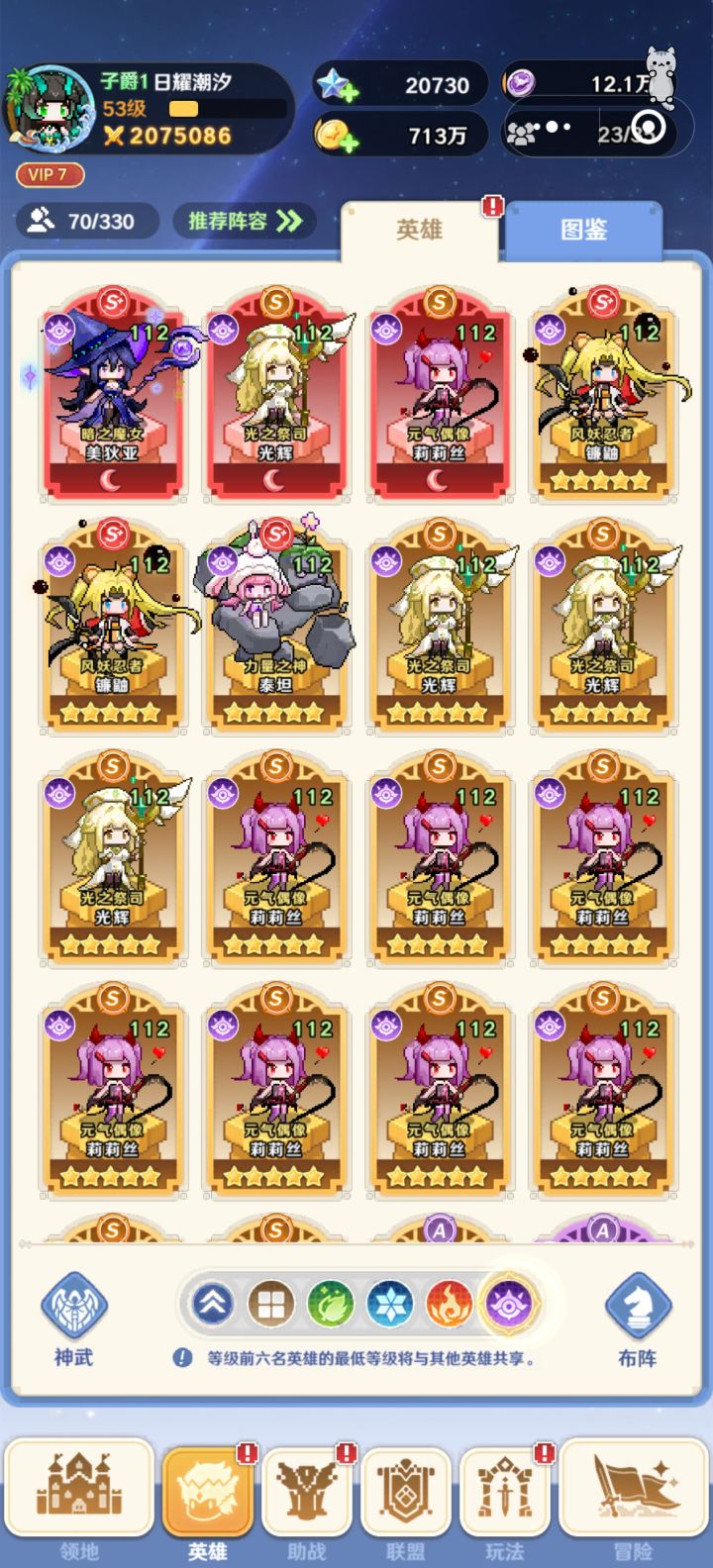 就只想定向培养六个 一个不多一个不少 后期会加一个阿波罗 太帅了 看看我这个阵容怎么调##指尖像素城 #指尖像素城兑换码 #发现好游戏
