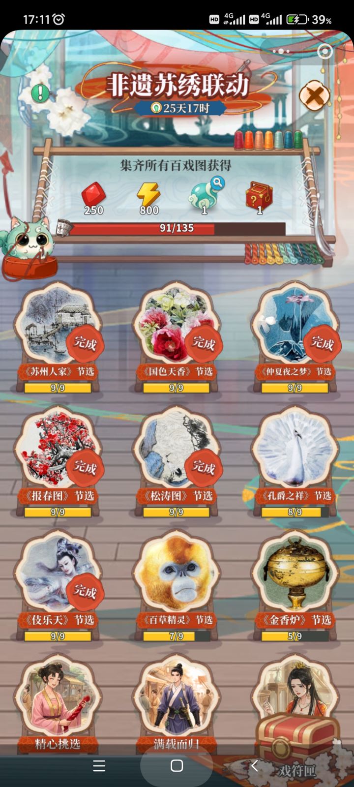 只赞置顶🔝🔝#指尖绣乾坤 这一季也是欧气满满呀选哪个做封面都不知道了,这次的苏绣都好喜欢呀~一早上突然集齐两张卡~500体力让人措手不及哈哈哈哈