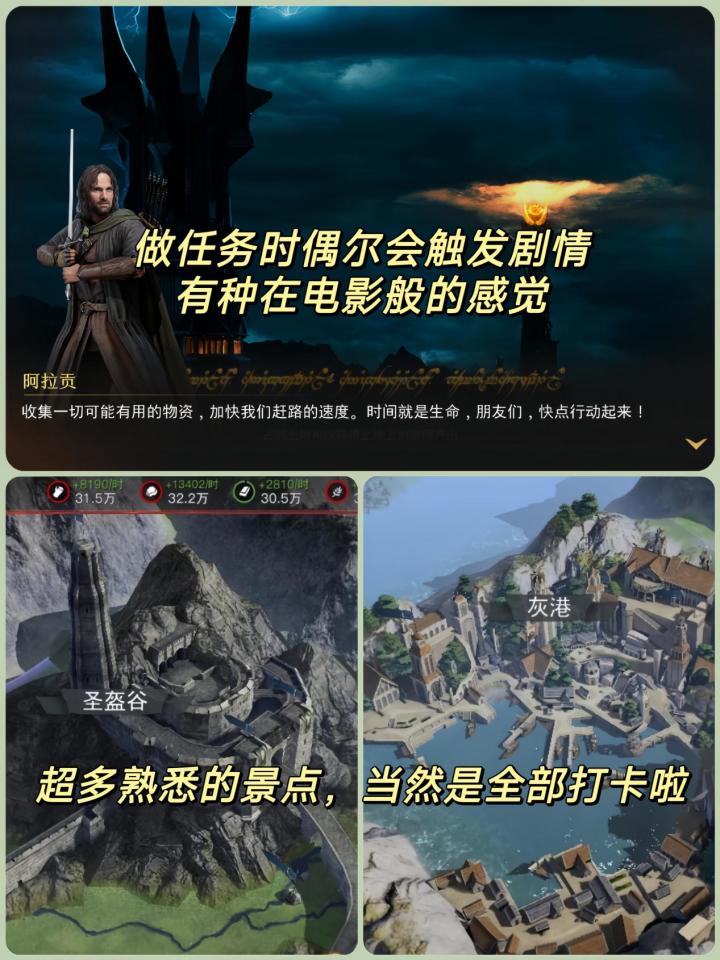 🌟游戏:《指环王:纷争》🌟平台:pc端、移动端🌟类型:SLG、战争、策略、养成 ━━━━━━━━━✂━━━━━━━━━ 🎨画风和角色还原💫这游戏的卖相不错,复古质感的画面,带你穿进魔幻史诗世界。大地图做得很有神秘感,开局视野有限,需要一点点探索方能窥探山川河流、粮草矿石物资和魔多侦查部队等中洲大陆的风光。由于拥有《指环王》官方授权,所以你将结识很多熟悉的角色,莱戈拉斯、阿拉贡、弗罗多