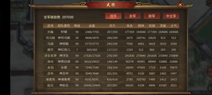 我所选取的是地狱50的档过挑战一,虽然拿着历史百周的奖励,但后面的成就特技属于锦上添花。我军属性如图二张飞属性即可保证只受真伤威胁。配置如下:一路:刘备:一阶皮即可,主要是白虎,装备最好带有恶路移动和恢复自身状态的,防具带饕餮甲保着简雍不被第一回合秒掉,锦上添花之举给刘备历史90周的受击回血。简雍:粮车➕圣漆黑道袍在刘备身边苟活,重点行军加速,撑过第一回合引伏兵即可。二路:司马懿:神将圣套