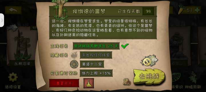 天数尾数4或7开启,准备四桶海水,进入大门后会有棵树挡住路,需要使用第二个隐藏任务的技能炸开,然后王座上走,直到看到开花的荷花,把开花的荷花浇枯萎 #游戏日常 #挨饿德的噩梦 #挨饿荒野