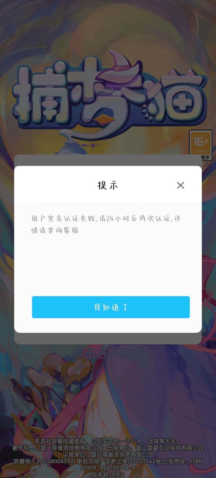 所以为什么我准确的填了个人信息但还是实名失败了,昨前天也是这样#游戏讨论#捕梦猫