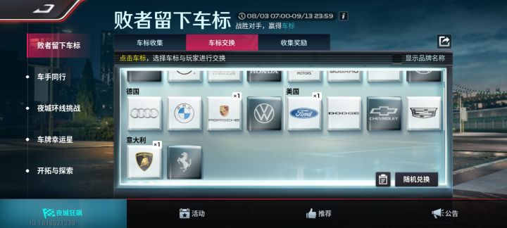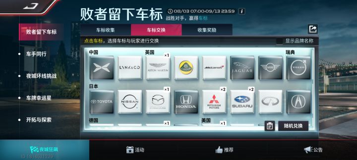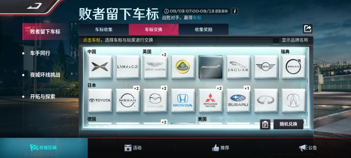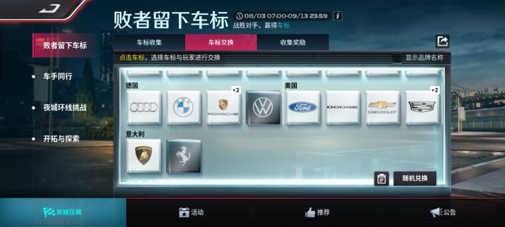 相信很多人都在为稀有车标而发愁。在大厅上喊半天没有人理。用这个方法 让你更快一步集齐所有车标。方法:跑单人,不组队。遇见稀有车标概率加大。⬆️遇见不想要的车标,可以故意跑输。跑单人有个优点,你只需要控制排名在对方之后就行。减少分数损失。如果组队 你故意跑输,会减35的分数。当然,果然队友给力,也不是不会赢。只是怕会被骂。跑两天可以集齐大部分稀有车标,之后拿一些你已经有3个的车标。集齐4