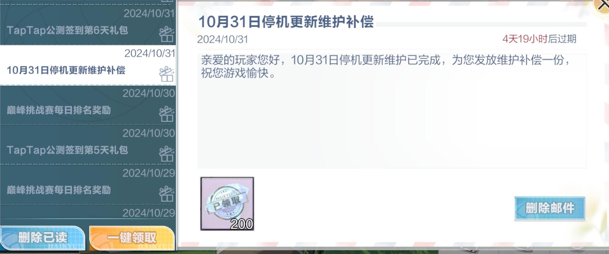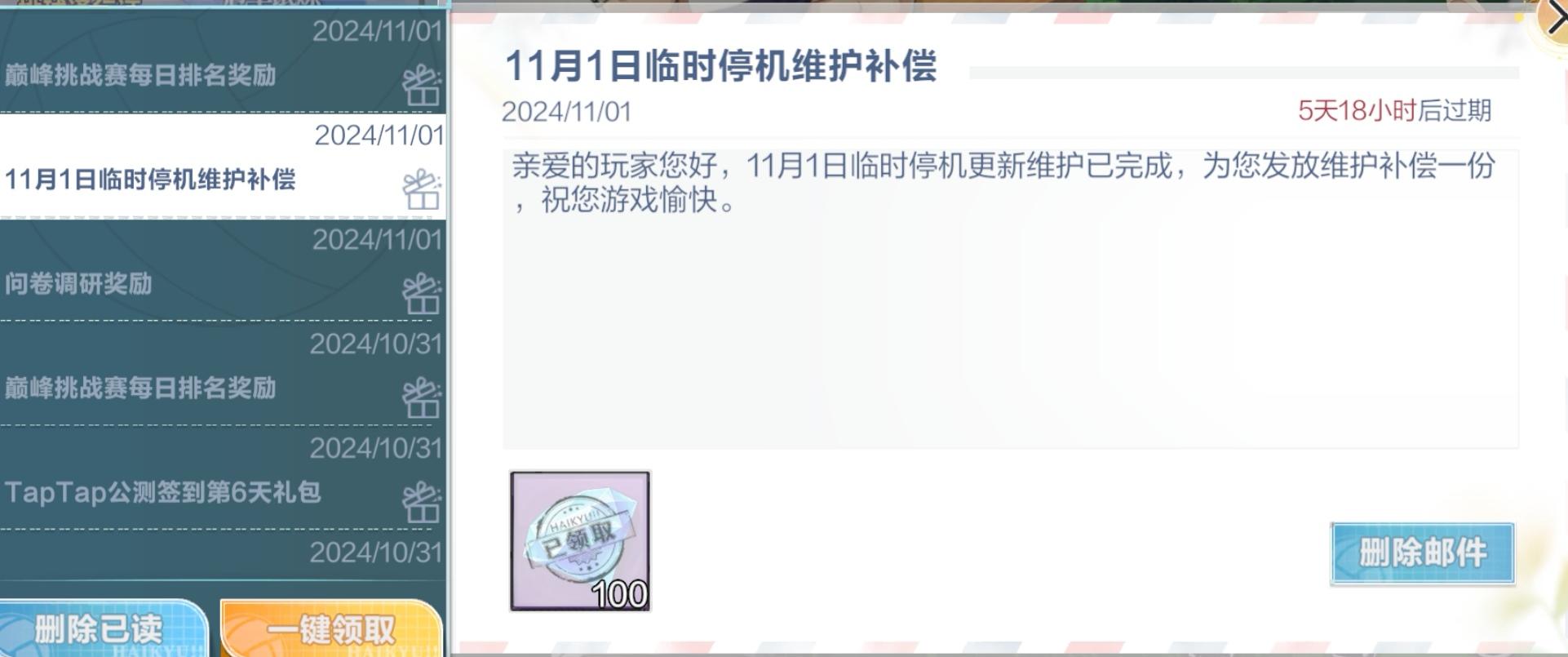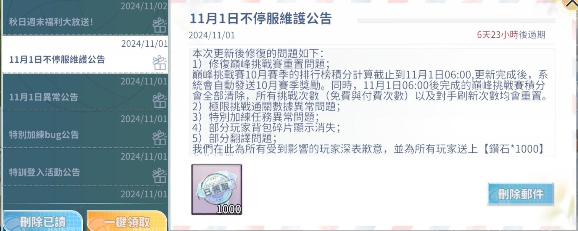 如图,国服两次维护一次200一次100,台服一次给1000,就算台服券300一张,这维护给的也不到一半啊#排球少年新的征程