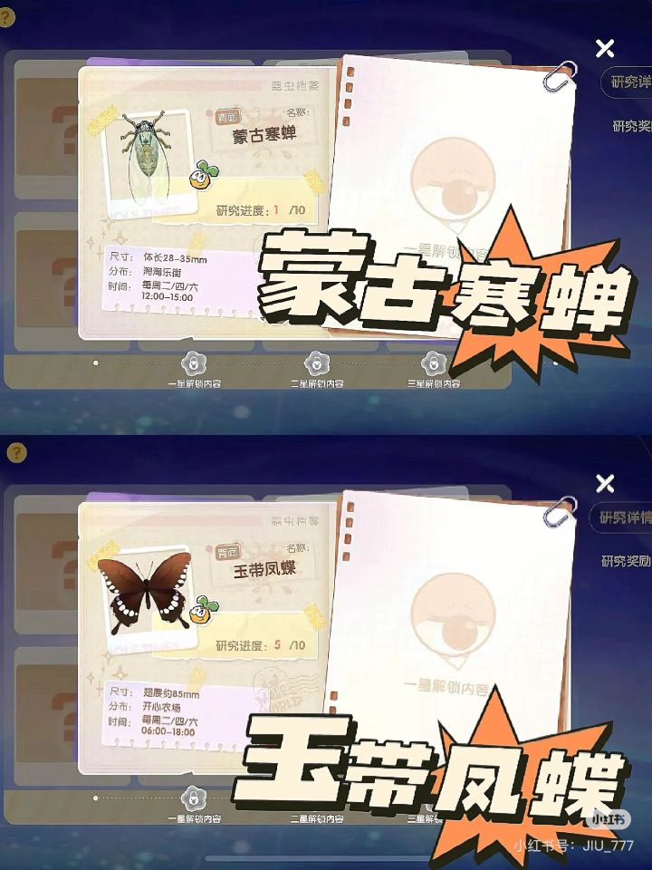 🦋8种百宝箱昆虫位置(每周一三五日)
