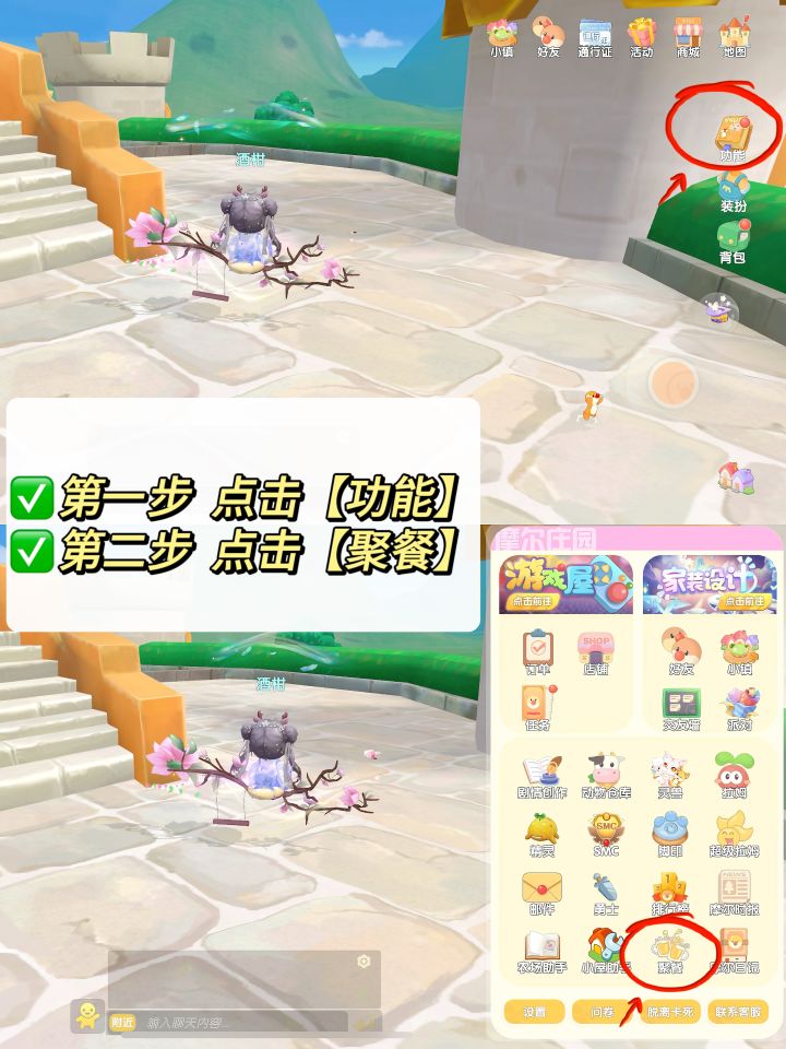 #摩尔庄园 #游戏攻略 #摩尔庄园隐藏菜谱 #摩尔庄园攻略 ⚠️每日首次或每周首次才可领取奖励⚠️每日首次可领取【美味灵感】,和尼克对话【菜谱商店】兑换稀有菜谱(需要美味灵感)⚠️九大隐藏菜谱首次制作可获得【50金豆】⚠️8月8日新更新菜谱【麦香浓郁】需要菜谱【水蛋堡】,该菜谱在尼克【菜谱商店】兑换。———————————————————————🌈【举办聚餐】点击【功能】➡️点击【聚