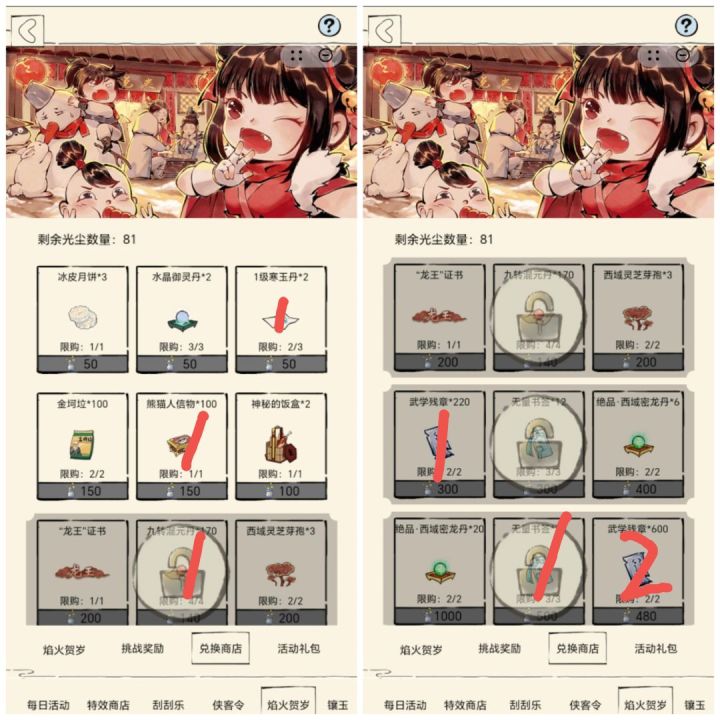 此次活动共持续21天,具体时间请看图,也可用于验算以下计算结果:(一)假定每日氪300元宝及60元宝,花费和收益分别是:总花费:7560元宝总收益:7560金条,1991光尘,359w潜能,359九转按图中路线购买,花费2100光尘若第三档选择灵芝则加六十,2160光尘在1991基础上,再买两次680礼包可得2154光尘(补一次不足2100),再补一次300金条可选灵芝(小亏但没办法)