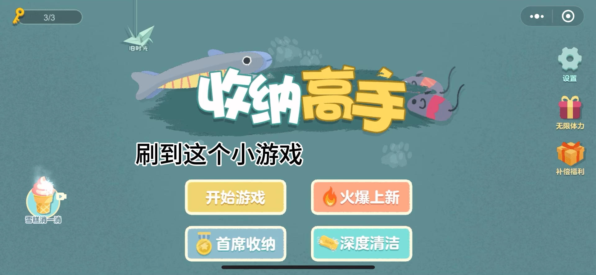 游戏名称 #脑洞人大冒险 #游戏冒险家大集结 #游戏安利 #游戏推荐 #墨鸽鸽的冷门游戏日记 #益智游戏 #休闲益智 #手机游戏 #小游戏 #小内存游戏 #收纳 #解压 #收纳游戏 #雪糕刺客 #清理 一款多种风格小游戏综合的手游,其中收纳整理的部分比较有趣。包含了化妆包,针线盒,衣柜,文具袋,藤壶清理等等… ⬇️⬇️⬇️喜欢的小伙伴可以试一下