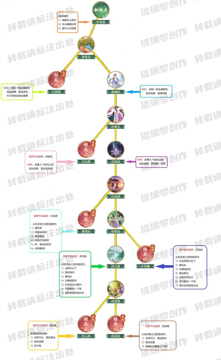 推荐回梦顺序为❻❹❸❷❶❺,因为回梦每完成一个结局,难度就会相对提升一部分,所以把最难的结局先完成,最低战力更轻松达成全结局。完成每个结局都有不同的奖励,具体的看下图,完成结局一可获得成就《此情可待成追忆》,完成全结局不仅可获得彩依本体还有灵玉红尘契等你拿。回梦难点阵容推荐(0氪无剑圣版本)因为前期大部分人没有剑圣,剑圣9星才是成神的开始,所以推荐无剑圣阵容,更适合大众⭐难点一:女娲族人