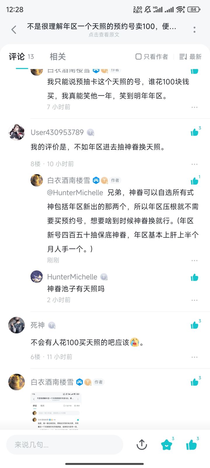 我之前发的萌新别买预约号尤其天照的帖子被压到底下去了再劝一遍