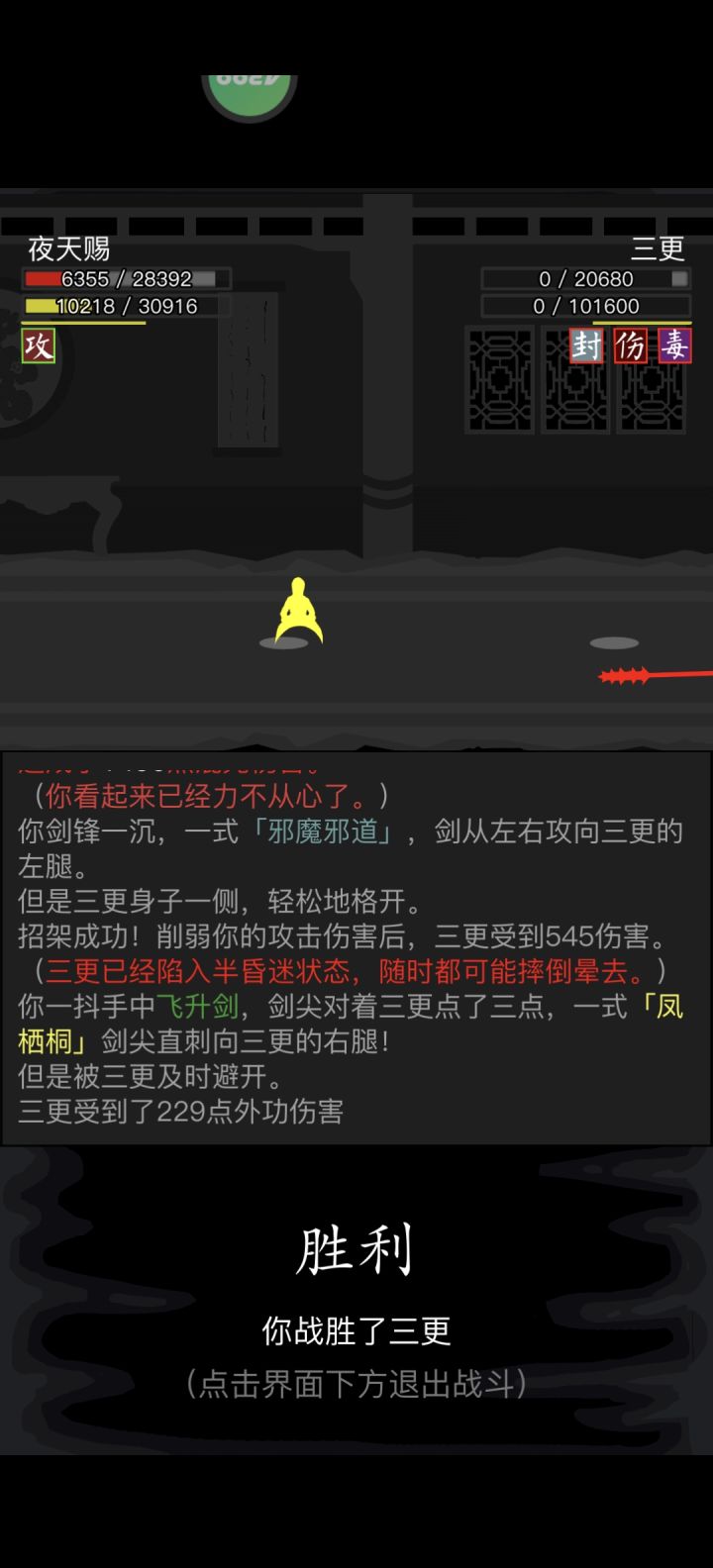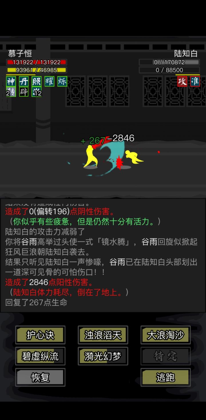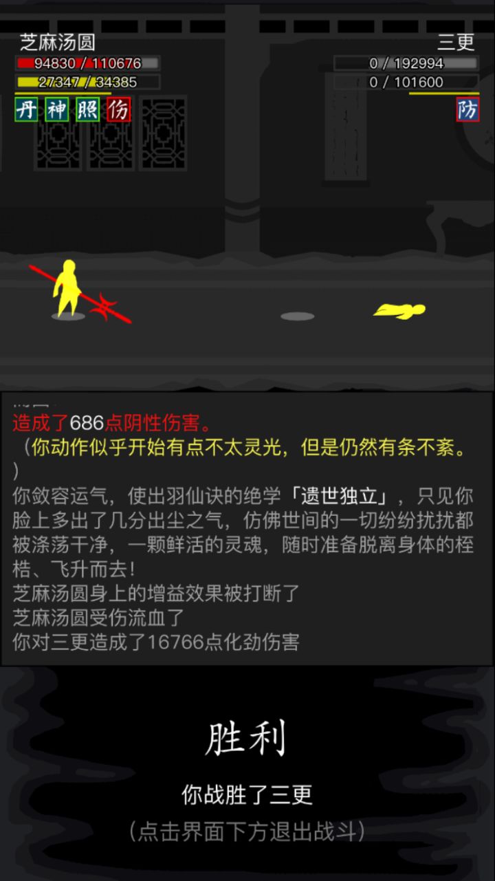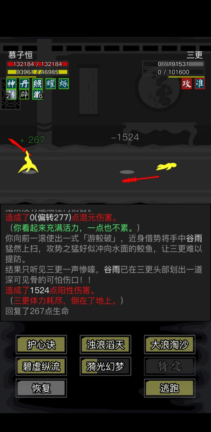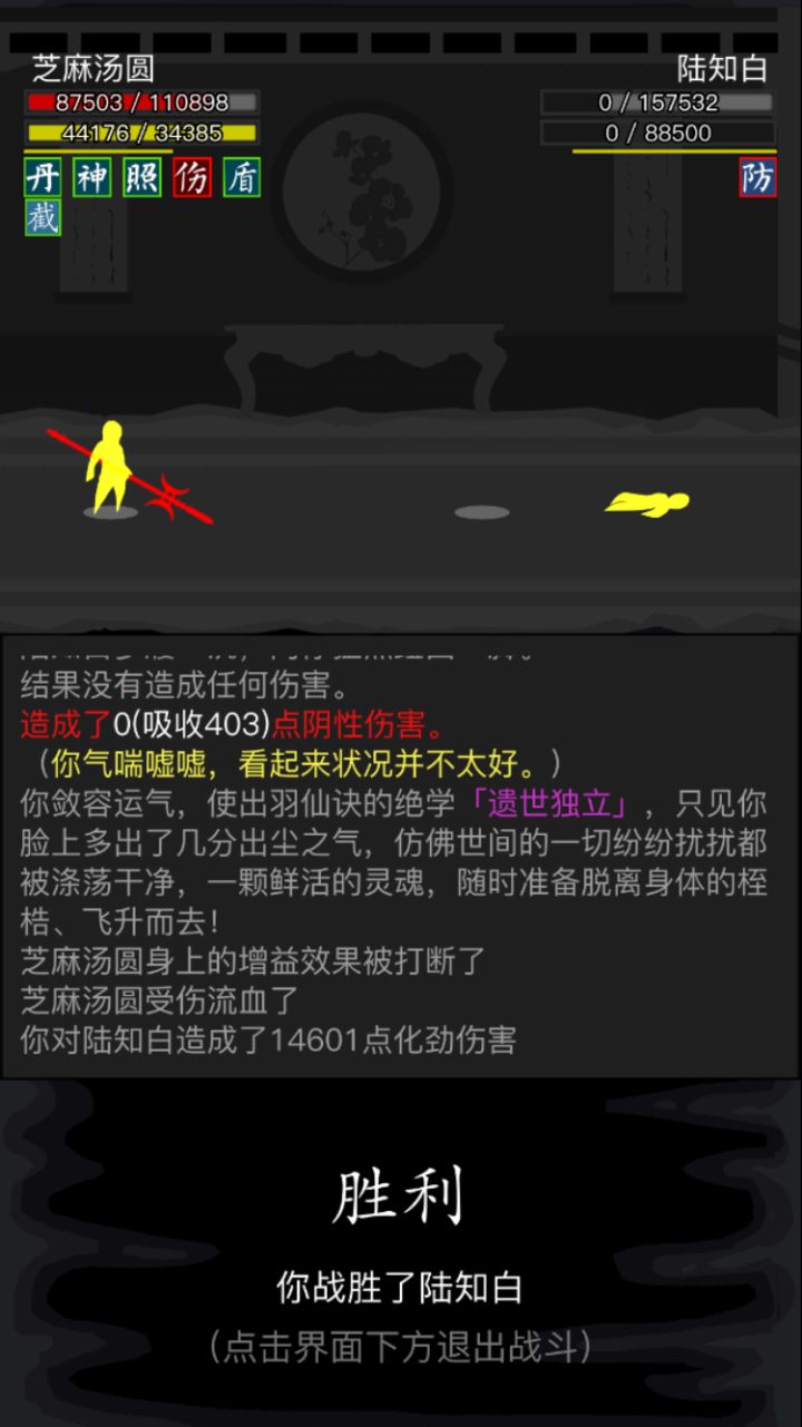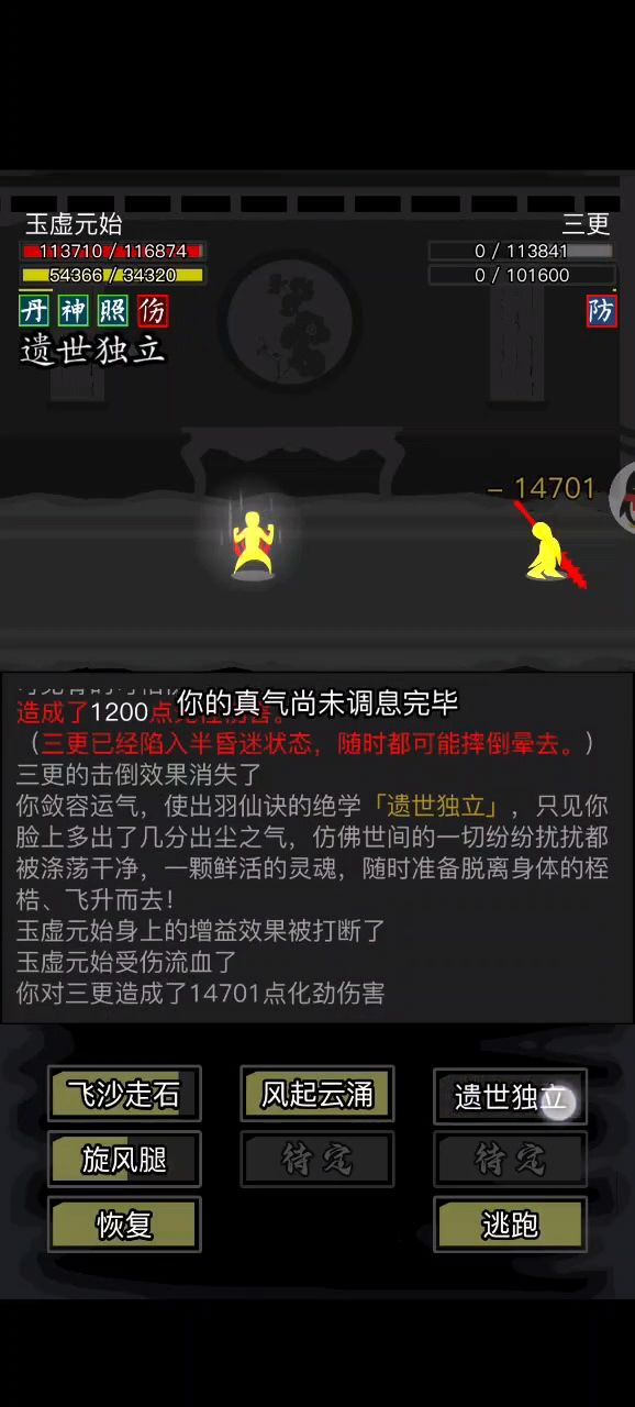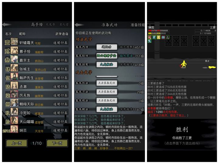 #放置江湖三英会武 天龙萌新磨过三英。个人感觉三更最好打,箕风客磨的最恶心,陆知白危险最大。三更与陆知白用九龙逆焰旋风腿,加攻以及频繁的控制,先将其消耗至内力耗尽,然后就好打了。箕风客有灵羽,所以选择了天龙绝学,因为我也没有其他拳脚了,练度挺低的,先将内力磨完,然后慢慢用理绝打。必不可少的其实是长生诀,没有长生诀很难打,长生诀的快速回复血量内力起到了决定性的作用。感谢各位发贴的大佬提供