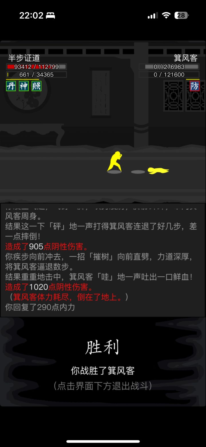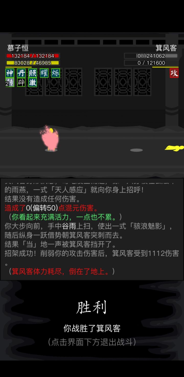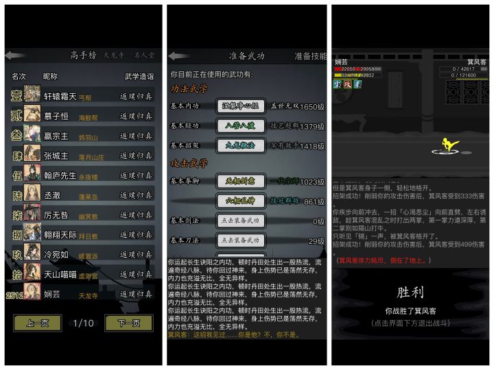 #放置江湖三英会武 最恶心的还是第1个箕风客,因为它会使用灵犀,并且会吸星大法内力不足,推荐内功羽仙诀,0加力进场,只需要进场之后不断使用羽仙决然后退出,重复数次后对手空内,接下来可以使用羽仙加青岚双化劲数回合便可解决。当然也可以硬打如果你像我一样有双大回内拳脚可以直接进场硬打把对面耗死,对面一空内就可以切青岚加速了。此方法不吃练度,悟性也可通过,当然练度实在太低武学没有重数的话不建议尝试。 接