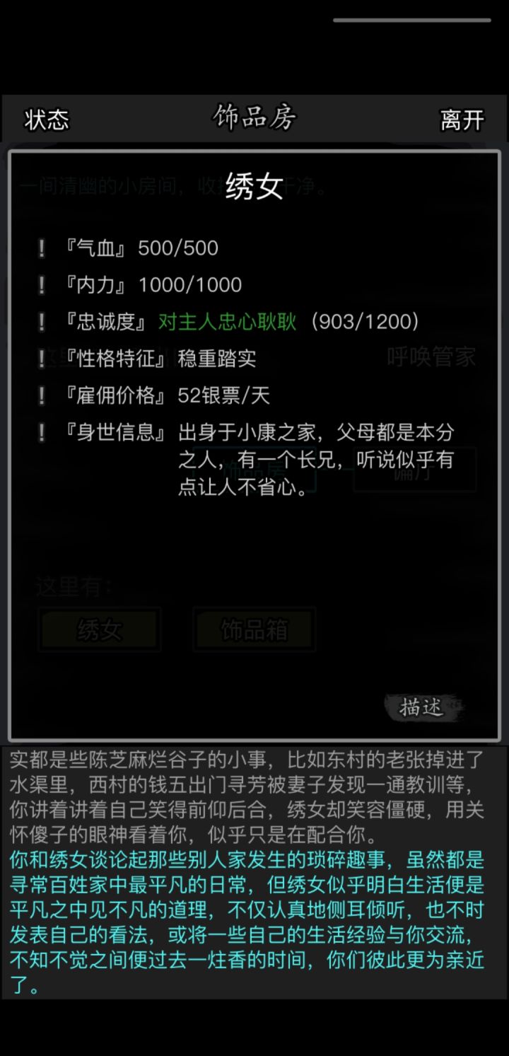 1.第一张图是我进家园时卡的,就如图那样一直请稍后,包括点进主页面左上角的活动有时候也是这样,卡住的概率很高,去年的时候还没有这种情况,不知道是哪次更新后就很容易卡住了,只能重启解决。我问过客服,他让我卸了重下,可是我重下后这个问题还会出现。求助,有大佬知道该怎么办吗?2.请问我的绣女怎么没刷特性啊,是忠诚度不够吗?#放置江湖 #放置江湖微信群 #放置江湖家园系统
