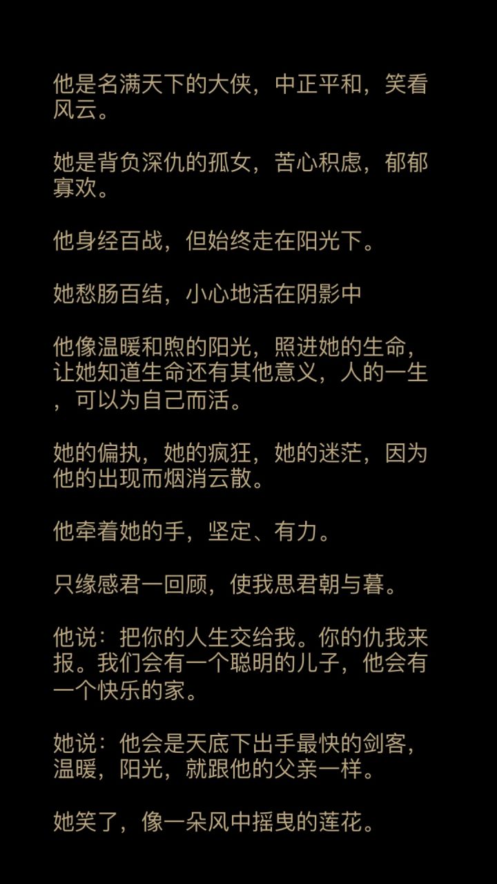 我已经弃坑很久了,偶然间发现了之前的游戏截图,我记得是七夕节的活动文案,选了沈浪和白飞飞之后出现的文案,有没有人有其他人物的截图?记得还有杨过小龙女郭襄,张无忌周芷若赵敏,总之就是一些三人修罗场#放置江湖 #放置江湖qq群 #放置江湖微信群